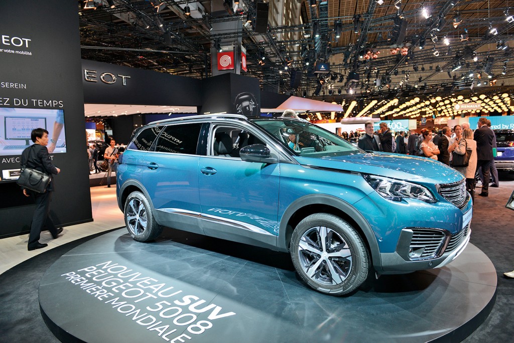 รถ เอสยูวี อีกรุ่นหนึ่งซึ่งค่าย "สิงห์เผ่น" นำออกอวดตัวแบบ "ครั้งแรกในโลก" ที่งานนี้ คือ รถติดป้ายชื่อ เปอโฌต์ 5008 (PEUGEOT 5008) ที่เห็นในภาพเล็กขวามือ นับเป็นรถรุ่นที่ 2 และเป็นรถขนาด 7 ที่นั่ง ซึ่งต้องรอจนถึงฤดูใบไม้ผลิของปี 2017 จึงจะเริ่มออกโชว์รูมแทนที่รถชื่อเดียวกันรุ่นปัจจุบัน ซึ่งอยู่ในสายการผลิตมายาวนานตั้งแต่ปี 2009 และเป็นรถ เอมพีวี ไม่ใช่ เอสยูวี ตัวถังที่ยาวประมาณ 4.720 ม. ออกแบบได้ดีไม่น้อยหน้ารถอนุกรมน้องที่เปิดตัวพร้อมกัน ห้องโดยสารที่ดูทันสมัยมากก็เป็นผลลัพธ์ของการออกแบบที่ค่ายนี้ตั้งชื่อว่า PEUGEOT I-COCKPIT เช่นกัน ที่ดูจะเหนือกว่าก็คือ ระบบความปลอดภัยที่ติดตั้งอุปกรณ์ไว้เพียบ รวมทั้ง AEBS หรือระบบห้ามล้อฉุกเฉินซึ่งจะทำงานโดยอัตโนมัติใน 3 กรณี คือ เมื่ออาจชนกับรถที่วิ่งสวนมาขณะวิ่งเร็ว 5-140 กม./ชม. เมื่ออาจชนกับรถที่จอดขณะวิ่งเร็วไม่เกิน 80 กม./ชม. และเมื่ออาจชนคนเดินถนนขณะวิ่งเร็วไม่เกิน 60 กม./ชม.
