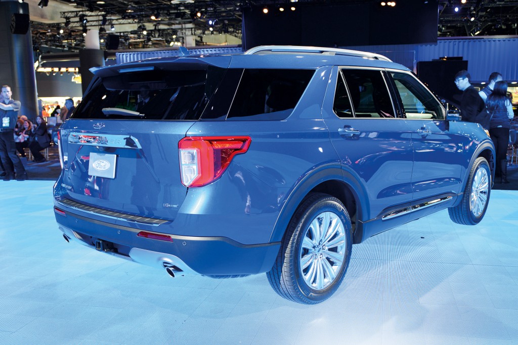 จุดโฟคัสความสนใจในบูธของค่าย "วงรีสีฟ้า" คือ เอสยูวี ติดป้ายชื่อ ฟอร์ด เอกซ์พลอเรอร์ (FORD EXPLORER) รุ่นใหม่ ซึ่งปรากฏตัว "ครั้งแรกในโลก" ที่งานนี้ และต้องรอจนถึงฤดูร้อนของปีหมูทองร้องจ๊ากนี่แหละจึงจะเริ่มออกโชว์รูมในฐานะรถรุ่นปี 2020 เป็น FULL-SIZE CROSSOVER SUV หรือรถกิจกรรมกลางแจ้งข้ามพันธุ์ขนาดโตเต็มพิกัด ในตัวถังขนาด 5.050x2.005x1.775-1.783 ม. ติดตั้งเก้าอี้ที่นั่ง 3 แถว ที่ออกแบบขึ้นใหม่ทั้งหมดตั้งแต่พื้นรถจรดหลังคา มีหน้าตา และรูปทรงองค์เอวที่ดูธรรมดาๆ ไม่มีจุดเด่นตรงไหนที่สมควรกล่าวถึง จะมีทั้งแบบขับล้อหลังแบบขับทุกล้อ และมีขุมพลังขับเคลื่อนให้เลือกถึง 3 แบบ คือ ด้วยเครื่องยนต์เทอร์โบเบนซินฉีดตรง DOHC 4 สูบเรียง 2.3 ลิตร 300 แรงม้า ด้วยเครื่องยนต์เทอร์โบเบนซินฉีดตรง DOHC วี 6 สูบ 3.0 ลิตร 365/400 แรงม้า และด้วยระบบขับไฮบริดชนิดไม่มีการเสียบปลั๊กเพื่อชาร์จไฟ ที่ให้กำลังสุทธิสูงสุด 318 แรงม้า