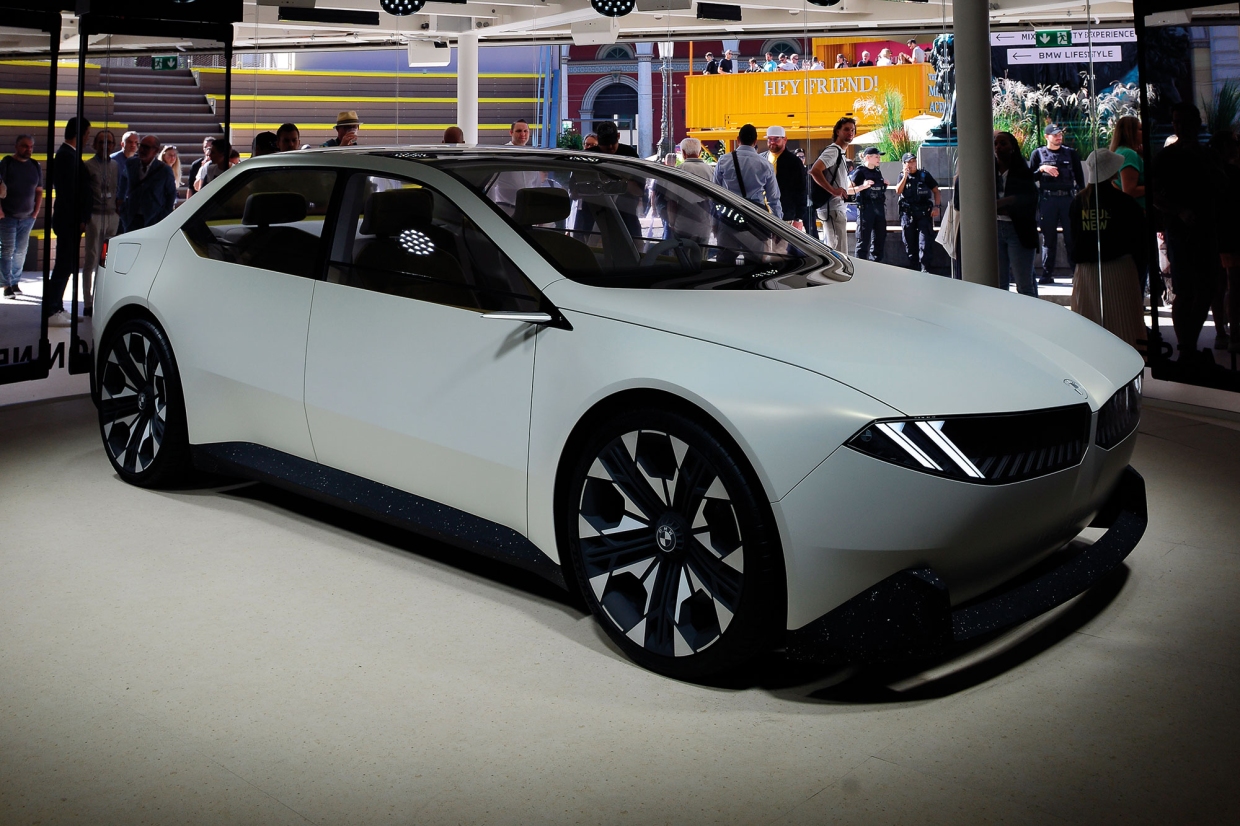 ผลงานสำคัญที่สุดของค่าย “ใบพัดเครื่องบินสีฟ้าขาว” ในงานนี้ คือ รถติดป้ายชื่อ BMW VISION NEUE KLASSE (บีเอมดับเบิลยู วิชัน นิว คลาสส์) ซึ่งปรากฏตัวทั้งในส่วน B2B และ B2C เป็นรถแนวคิดในรูปลักษณ์ของรถเก๋งซีดาน 4 ประตู 4 ที่นั่ง ซึ่งมีขนาดใกล้เคียงกับรถ BMW 3-SERIES (บีเอมดับเบิลยู ซีรีส์-3) ที่คนรักรถทั่วโลกคุ้นเคยกันดี เป็นรถที่รังสรรค์ขึ้นเพื่อบ่งบอกทิศทางของรถพลังไฟฟ้าล้วนๆ สายพันธุ์ใหม่ ที่ค่ายนี้ตั้งใจว่าในช่วงปี 2025-2027 จะบรรจุเข้าสู่สายการผลิตรวม 6 หรือ 7 แบบ โดยใช้โรงงานที่เพิ่งสร้างขึ้นใหม่ในฮังการีเป็นที่ผลิต รายละเอียดของตัวถังทั้งภายนอก และภายในฉีกแนวไปจากรถพลังไฟฟ้าทุกรุ่นทุกแบบที่ผลิตจำหน่ายปัจจุบัน ส่วนระบบขับก็จะใช้มอเตอร์ไฟฟ้าที่ทรงประสิทธิภาพ และแบทเตอรีที่พัฒนาขึ้นใหม่ มีค่าความจุพลังงานสูงขึ้นร้อยละ 20 สามารถชาร์จไฟได้เร็วขึ้นร้อยละ 30 และมีระยะเดินทางเพิ่มขึ้นร้อยละ 30 ผลลัพธ์โดยรวม คือ รถมีประสิทธิภาพสูงขึ้นถึงร้อยละ 25