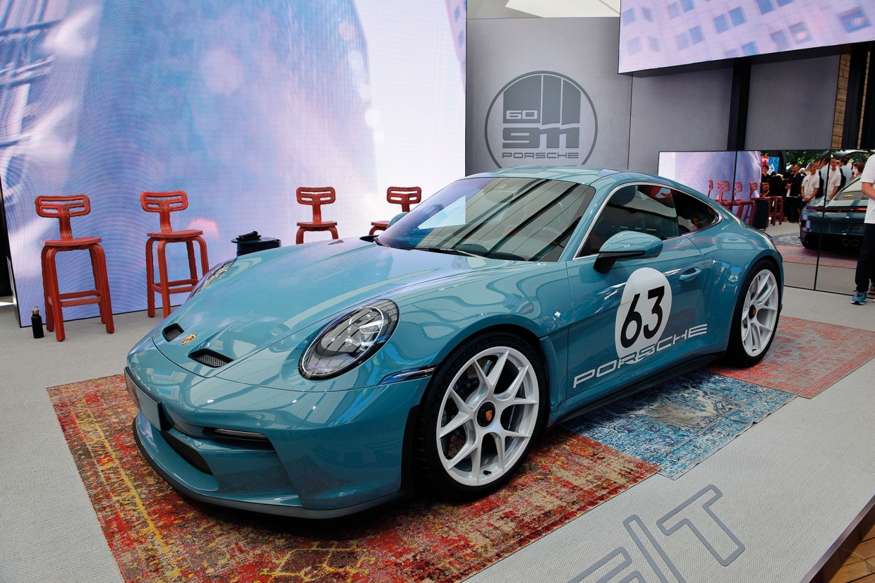 PORSCHE 911 S/T (โพร์เช 911 เอส/ที) รถเฉลิมฉลองวาระ 60 ปีของรถสปอร์ทยอดดัง PORSCHE 911 (โพร์เช 911) เปิดตัวก่อนงานนี้ 1 เดือน และเป็นรถอีกคันที่ทีมงานของเราเพิ่งมีโอกาสสัมผัสตัวจริง เป็นรถที่จะผลิตเพียง 1963 คัน (เพราะรถ PORSCHE 911 เริ่มการจำหน่ายในปี 1963) และเป็นรถที่ไม่ได้ทำขึ้นใหม่ทั้งคัน แต่พัฒนาจากรถที่มีอยู่ก่อนแล้วในสายการผลิต คือ PORSCHE 911 GT3 RS (โพร์เช 911 จีที 3 อาร์เอส) โดยการปรับปรุงเปลี่ยน แปลงรายละเอียดมากมายเพื่อลดน้ำหนัก ทำให้มีน้ำหนักตัวเพียง 1,380 กก. คือ เบากว่ารถ PORSCHE 911 ทุกโมเดลที่จำหน่ายอยู่ในขณะนี้ และเปลี่ยนระบบเกียร์ จากเกียร์อัตโนมัติคลัทช์คู่ 7 จังหวะ PDK เป็นเกียร์ธรรมดา 6 จังหวะ ซึ่งส่งผลให้รถติดตั้งเครื่องยนต์เบนซินฉีดตรง 6 สูบนอนยัน (BOXER) 24 วาล์ว 3,996 ซีซี 386 กิโลวัตต์/525 ซีซี ที่สามารถทำความเร็วสูงสุด 300 กม./ชม. โมเดลนี้ กลายเป็นรถ PORSCHE 911 เกียร์ธรรมดาที่ทรงพลังที่สุดในประวัติศาสตร์อีกต่างหาก