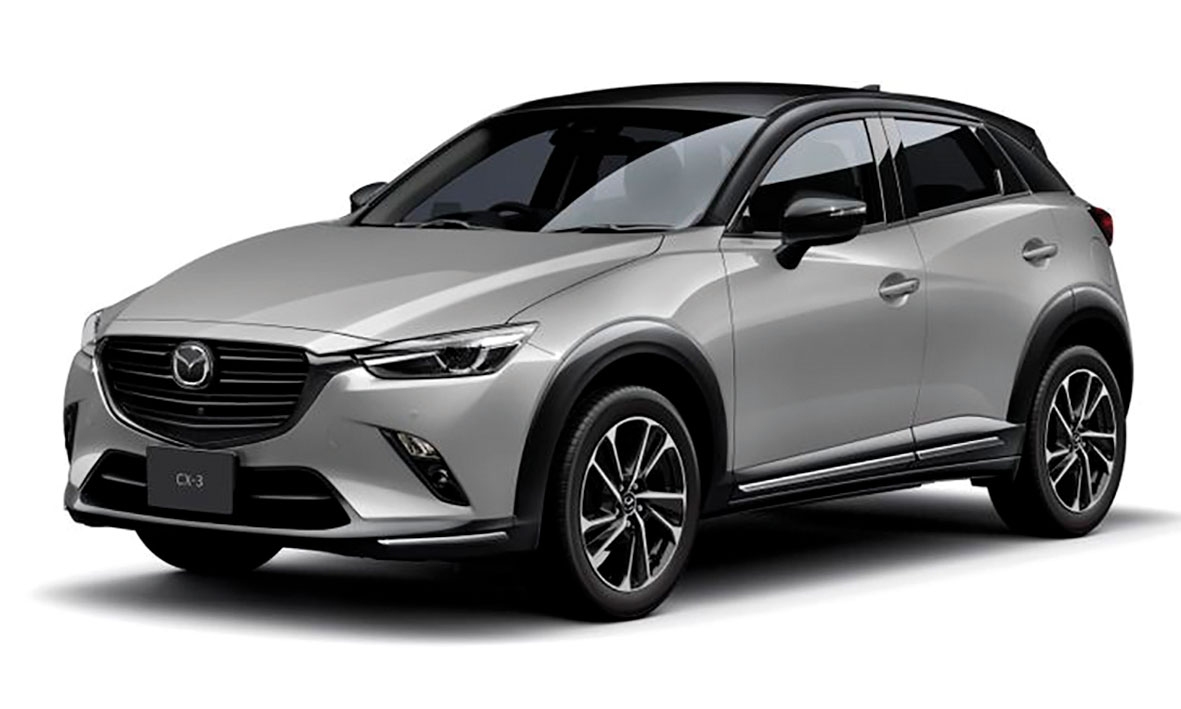 MAZDA CX-3 (มาซดา ซีเอกซ์-3) ครอสส์โอเวอร์ เอสยูวีรุ่นเล็กโฉมล่าสุด ขุมพลังเบนซิน SKYACTIV ความจุ 2.0 ลิตร ให้กำลัง 156 แรงม้า แรงบิดสูงสุด 20.8 กก.-ม. เกียร์อัตโนมัติ 6 จังหวะ ขับเคลื่อน 2 ล้อหน้า