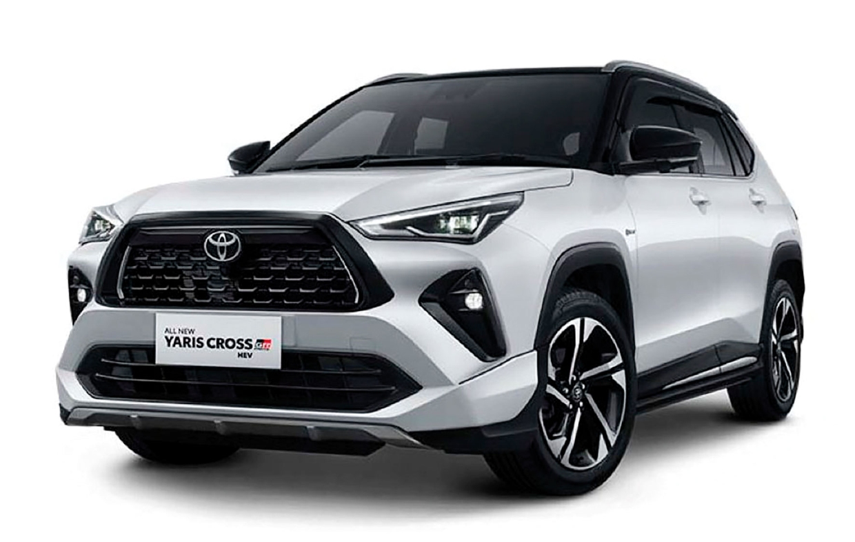 TOYOTA YARIS CROSS HEV (โตโยตา ยารีส ครอสส์ เอชอีวี) ครอสส์โอเวอร์ เอสยูวีรุ่นเล็ก ขุมพลังไฮบริด ความจุ 1.5 ลิตร ทำงานร่วมกับมอเตอร์ไฟฟ้า ให้กำลังสุทธิ 111 แรงม้า เกียร์อัตโนมัติ E-CVT ขับเคลื่อนล้อหน้า
