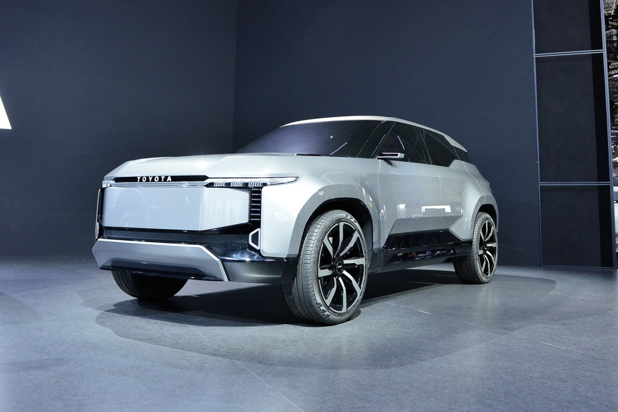 จุดดึงดูดสายตาอีกจุดในพื้นที่ของค่ายยักษ์ใหญ่ คือ รถติดป้ายชื่อ TOYOTA LAND CRUISER SE (โตโยตา แลนด์ ครูเซอร์ เอสอี) ที่เห็นใน 2 ภาพล่าง เป็นรถแนวคิดในรูปลักษณ์ของ 3-ROW FULL-SIZE CROSSOVER SUV หรือรถกิจ กรรมกลางแจ้งข้ามพันธุ์ขนาดโตเต็มพิกัด ซึ่งห้องโดยสารติดตั้งเก้าอี้ที่นั่ง 3 แถว ตัวถังขนาด 5.150x1.990x1.705 ม. ที่นั่งได้รวม 7 คน มีรูปทรงที่ดูดี มีสไตล์ ให้ความรู้สึกในคุณภาพ และทรงพลัง เป็นตัวถังแบบ MONOCOQUE หรือ UNIBODY ซึ่งเป็นตัวถังรับแรงแบบรถเก๋ง นอกจากนั้น ยังเป็นรถที่ผู้ผลิตยืนยันว่า เมื่อวิ่งในเมืองจะวิ่งได้เงียบมาก ซึ่งก็ควรจะเป็นเช่นนั้น เพราะยักษ์ใหญ่ระบุอย่างชัดเจนว่า เป็นรถอีกคันที่เป็น BEV (BATTERY ELECTRIC VEHICLE) คือ รถพลังไฟฟ้าใช้แบทเตอรี และไม่มีการติดตั้งเครื่องยนต์ใดๆ อย่างไรก็ตาม ยังไม่มีการยืนยันว่ารถแนวคิดคันนี้จะเปลี่ยนสภาพเป็นรถผลิตเพื่อจำหน่ายหรือไม่ ?