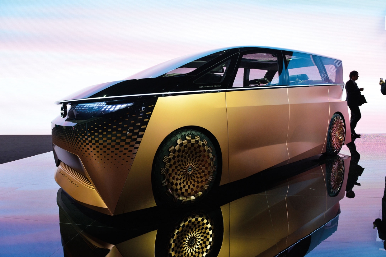 คันสุดท้ายของรถแนวคิดตระกูล HYPER ซึ่งปรากฏตัว “ครั้งแรกในโลก” ที่งานนี้ คือ รถติดป้ายชื่อ NISSAN HYPER TOURER (นิสสัน ไฮเพอร์ ทัวเรอร์) ที่เห็นในภาพเล็กขวามือ อธิบายอย่างย่นย่อได้ว่า เป็นรถแนวคิดในรูปลักษณ์ของ ALL-ELECTRIC MINIVAN หรือรถตู้มีนีแวนขับเคลื่อนด้วยพลังไฟฟ้าล้วนๆ ที่ผู้ผลิตบอกว่า ออกแบบ และพัฒนาโดยเน้นเป็นพิเศษ ในเรื่องการบ่มเพาะ และเสริมสร้างการยึดเหนี่ยวของผู้คนที่เดินทางไปด้วยกัน เป็นคำอธิบายที่ฟังดูเท่แต่ยากจะเข้าใจในความหมาย ที่น่าสนใจนอกจากการเป็นรถพลังไฟฟ้า คือ เป็น FULLY AUTONOMOUS DRIVING VEHICLE หรือรถที่วิ่งได้ด้วยตัวเองอย่างสมบูรณ์แบบ ผู้นั่งบนเก้าอี้ผู้ขับที่หมุนได้รอบตัว จึงมีอิสระเสรีในการสนทนาวิสาสะกับผู้โดยสารบนเบาะหลังโดยไม่ต้องกังวลกับการวิ่งของรถ ที่คล้ายกันกับรถคันก่อน คือ ระบบตรวจจับคลื่นสมอง อัตราการเต้นของหัวใจ อัตราการหายใจ แล้วปรับแสงกับเสียงให้สอดคล้อง