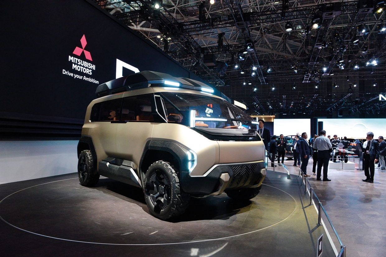 ค่าย “สามเพชร” ที่ยอดขายรถในญี่ปุ่นมีอาการน่าเป็นห่วง ใช้รถแนวคิดเพียงคันเดียวดึงดูดผู้คนเข้าสู่บูธได้แน่นขนัด คือ MITSUBISHI D:X CONCEPT (มิตซูบิชิ ดี:เอกซ์ คอนเซพท์) ที่เห็นใน 3 ภาพบน ปรากฏตัวแบบ “ครั้งแรกในโลก” ที่งานนี้ ในรูปลักษณ์ของ ELECTRIFIED CROSSOVER MPV หรือรถอเนก ประสงค์ข้ามพันธุ์พลังไฟฟ้า ที่สามารถผสมผสานระบบขับด้วยพลังไฟฟ้า และเทคโนโลยีการขับเคลื่อนทุกล้อเข้าด้วยกันอย่างเหมาะสม เป็นแม่แบบของรถรุ่นใหม่ที่อีกไม่นานจนเกินรอ ค่ายนี้จะนำออกสู่ตลาดพร้อมกับป้ายชื่อ MITSUBISHI DELICA (มิตซูบิชิ เดลีคา) เป็นรถตู้อเนกประสงค์ในตัวถังทรงกล่องเดียวรูปทรงชวนระทึก มีประตูข้างที่เปิดแยกจากกันโดยไม่มีเสาย้ำยันกลาง เป็นเหมือนประตูตู้กับข้าว (บานหน้าเป็นประตูติดบานพับ บานหลังเป็นประตูเลื่อน) ห้องโดยสารติดตั้งเก้าอี้ที่นั่ง 3 แถว นั่งได้รวม 6 คน แถวหน้าเป็นเก้าอี้ PANORAMIC SEATS ที่ปรับระดับสูง/ต่ำ และหมุนได้รอบตัว