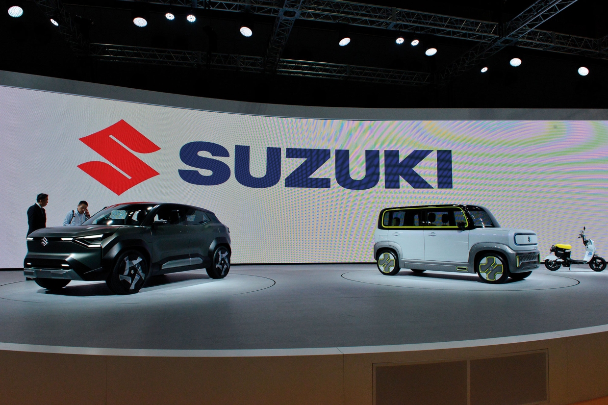 มหกรรมยานยนต์โตเกียวครั้งนี้ ยักษ์เล็กผู้ผลิตรถยนต์ และจักรยานยนต์ของเมืองปลาดิบ ดูไม่ฟู่ฟ่าเหมือนงานครั้งก่อนๆ เพราะบนเวทีขนาดใหญ่มีรถแนวคิดปรากฏตัวอยู่เพียงไม่กี่คัน คันสีเข้มในภาพซึ่งติดป้ายชื่อ SUZUKI EVX (ซูซูกิ อีวีเอกซ์) เป็นรถซึ่งอวดตัวแบบ WORLD PREMIERE หรือ “ครั้งแรกในโลก” ที่งาน 2023 AUTO EXPO ในอินเดีย เมื่อเดือนมกราคม 2023 แต่ทีมงานของเราเพิ่งได้เห็นตัวจริงเป็นครั้งแรกที่งานนี้ เป็นแม่แบบของรถพลังไฟฟ้าที่ค่ายนี้ตั้งใจจะผลิตจำหน่ายในตลาดทั่วโลก ตัวถังมีขนาด 4.300x1.800x 1.600 ม. ส่วนคันสีขาวซึ่งติดป้ายชื่อ SUZUKI EWX (ซูซูกิ อีดับเบิลยูเอกซ์) และปรากฏตัวแบบ “ครั้งแรกในโลก” ที่งานนี้ เป็นรถแนวคิดในรูปลักษณ์ของรถพลังไฟฟ้าขนาดมีนี ในตัวถังขนาด 3.395x1.475x1.620 ม. ซึ่งวิ่งได้ไกล 230 กม. เมื่อชาร์จไฟเต็ม เป็นตัวถังซึ่งทั้งหน้าตา และรูปทรงองค์เอวดูราบเรียบ และสะอาดตา กับมีห้องโดยสารที่ออกแบบได้ดี และนั่งสบายเหมือนไม่ใช่รถขนาดมีนี