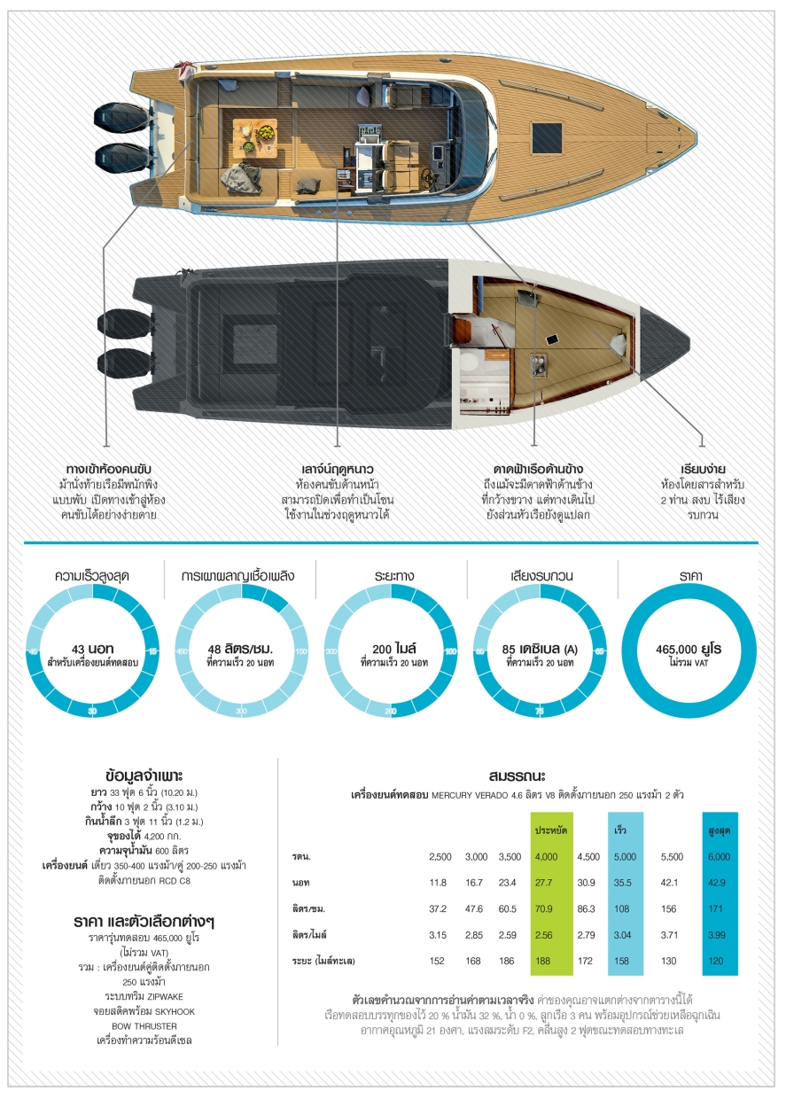 X POWER 33 มีราคาเริ่มต้นที่ 328,000 ยูโร ซึ่งแพง แต่ก็คุ้มกับสิ่งที่ได้มา เช่น การขับขี่ที่ยอดเยี่ยม รูปทรงตัวถังที่โดดเด่น เลย์เอาท์ดาดฟ้าเรือที่ลงตัว และคุณสมบัติอื่นๆ ที่ตกทอดมา แน่นอนว่า หากมองไปยังทางเข้าที่บริเวณหัวเรือ พื้นที่ใช้สอยสำหรับงานพาร์ที สุดสัปดาห์ที่ค่อนข้างจำกัด และความเป็นไปได้ที่จะมีน้ำเข้าจากทางหัวเรืออาจเป็นเหตุผลที่ทำให้คุณพักการตัดสินใจไว้ก่อน แต่ข้อดีของมันก็ยังคงชัดเจน ในโลกของการผลิตซ้ำทางอุตสาหกรรม X POWER 33 จัดเป็นผลงานชิ้นเอกเลยทีเดียว ติดต่อ: www.x-yachts.com