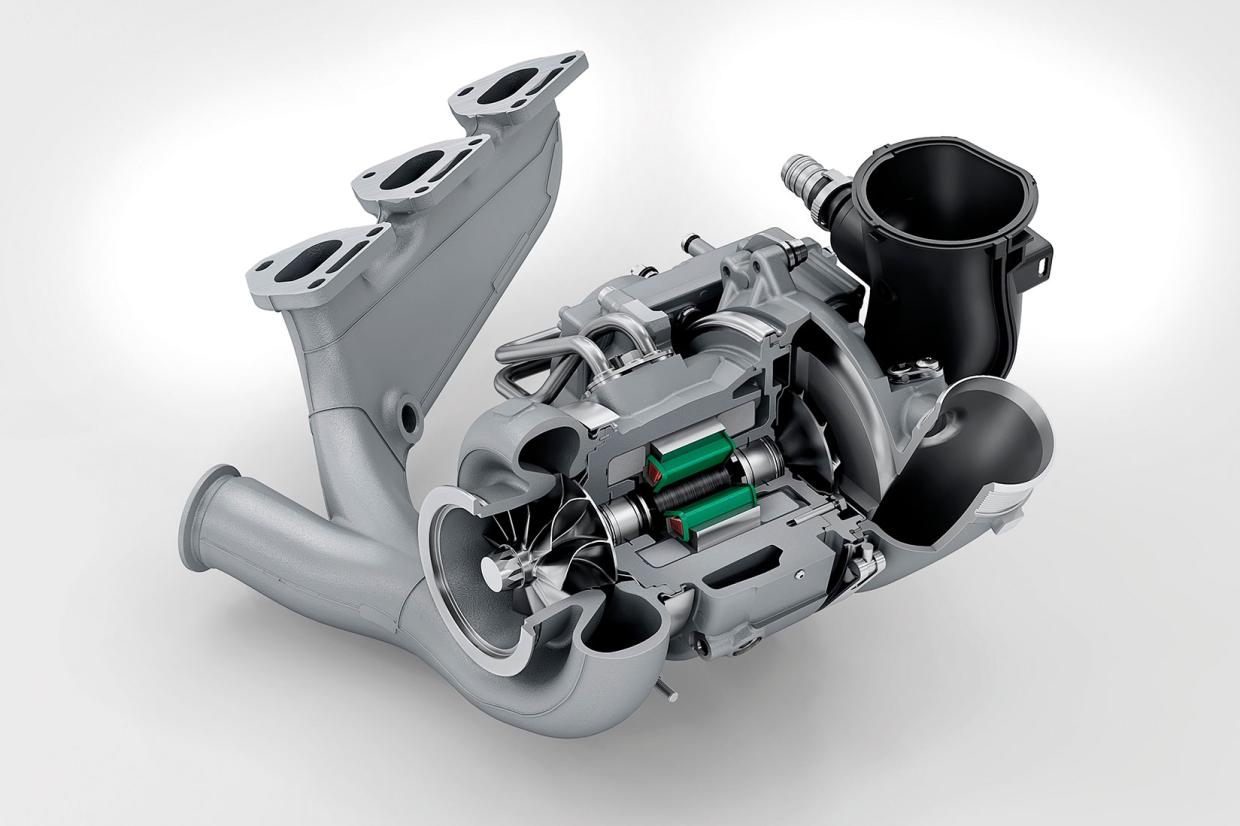 ดังที่กล่าวไปแล้วตอนต้นว่า เครื่องยนต์รหัส 9A3B6 จะมาพร้อมเทอร์โบเดี่ยวขนาดใหญ่ที่มีแกนเป็นมอเตอร์/เครื่องปั่นไฟ เทอร์โบที่ว่านี้พัฒนาขึ้นโดยบริษัท บอร์ก-วอร์เนอร์ (BORG-WARNER) โดยแกนหมุนของมอเตอร์ คือ แกนเพลาของเทอร์โบ ที่เชื่อมระหว่างกังหันฝั่งเทอร์ไบน์ (TURBINE) ที่หมุนด้วยแรงขับจากระบบไอเสีย และฝั่งคอมเพรสเซอร์ (COMPRESSOR) ที่ต่อกับระบบไอดี โดยมอเตอร์/เครื่องปั่นไฟนี้ ให้กำลังถึง 27 แรงม้า (20 กิโลวัตต์) ทำงานภายใต้ระบบไฟ 400 โวลท์