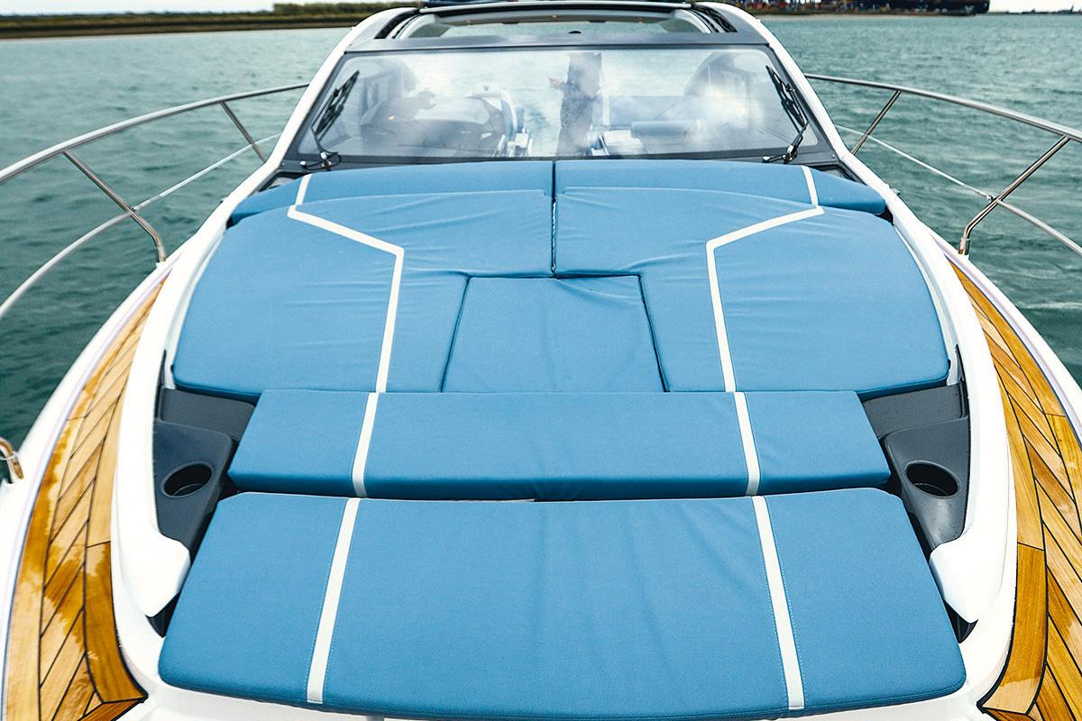 มีพื้นที่มากพอสำหรับ 4 คนบนเก้าอี้อาบแดดตรงกลาง และยังมีสิ่งพิเศษเล็กๆ น้อยๆ ที่น่าพอใจ เช่น พนักพิงที่สามารถปรับตำแหน่งได้หลายระดับ และโซฟาสำหรับสองคนหันหน้าไปข้างหน้า ซึ่งโผล่ออกมาจากขอบหน้าเตียงอาบแดด เป็นจุดที่ยอดเยี่ยมในการวางเท้าบนราวจับ และเพลิดเพลินกับไวน์สักแก้วในบรรยากาศเงียบสงบ