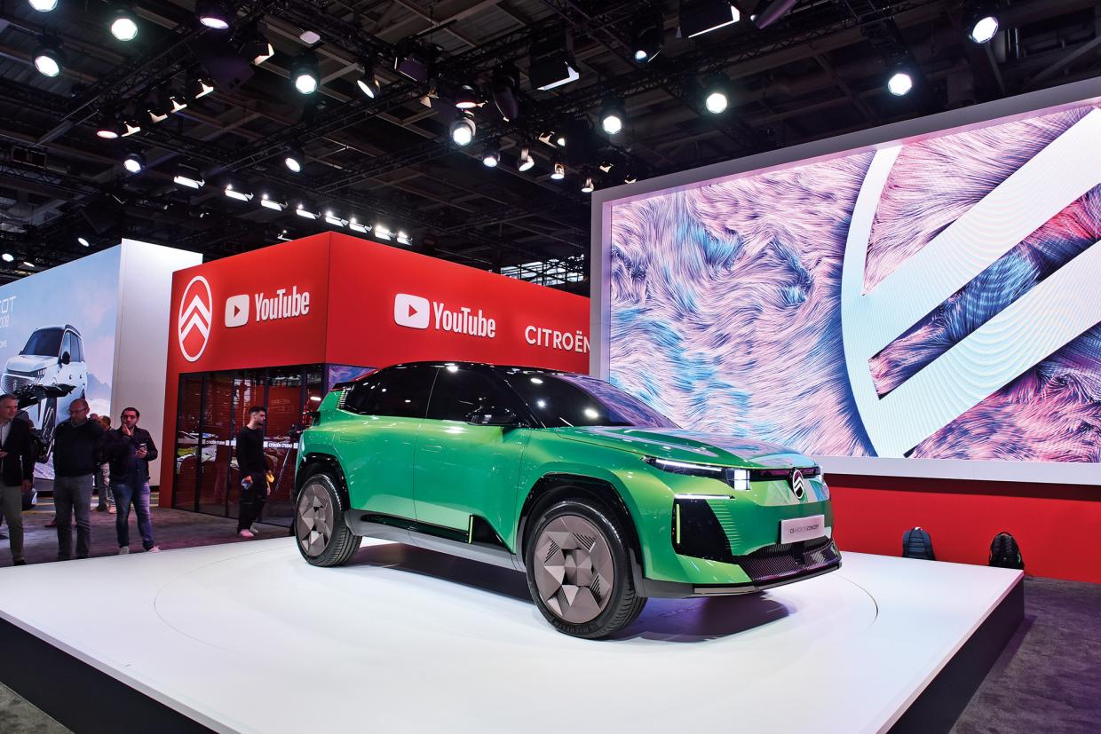 รถติดป้ายชื่อ CITROEN C5 AIRCROSS CONCEPT (ซีตรอง ซี 5 แอร์ครอสส์ คอนเซพท์) ก็เป็นรถอีกคันหนึ่งที่ปรากฏตัวแบบ WORLD PREMIERE หรือ “ครั้งแรกในโลก” ที่งานนี้ เป็นรถแนวคิดในรูปลักษณ์ของรถกิจกรรมกลางแจ้งข้ามพันธุ์พลังไฟฟ้าล้วนๆ ขนาดเล็กกะทัดรัด และเป็นแม่แบบของรถที่จะออกโชว์รูมในปี 2025 แทนที่รถ CITROEN C5 AIRCROSS รุ่นปัจจุบัน ที่อยู่ในตลาดมายาวนานตั้งแต่ปี 2018 ตัวถังซึ่งยาว 4.650 ม. และสูง 1.660 ม. ออกแบบขึ้นใหม่ทั้งหมดตั้งแต่พื้นรถจรดหลังคา โดยใช้พแลทฟอร์ม STLA PLATFORM ที่ต้นสังกัด คือ STELLANTIS GROUP (สเตนแลนทิส กรุพ) เพิ่งออกแบบ/พัฒนาขึ้นใหม่ และใช้ได้ทั้งกับรถติดตั้งเครื่องยนต์สันดาปภายใน รถไฮบริด หรือรถพลังไฟฟ้าล้วนๆ ส่วนภายในห้องโดยสารที่นั่งได้ 5 คน ยังไม่เปิดเผยรายละเอียด บอกแต่เพียงว่า กว้างขวางเพียงพอสำหรับครอบครัว และให้ความรู้สึกเหมือนนั่งอยู่ในเลาน์จ์