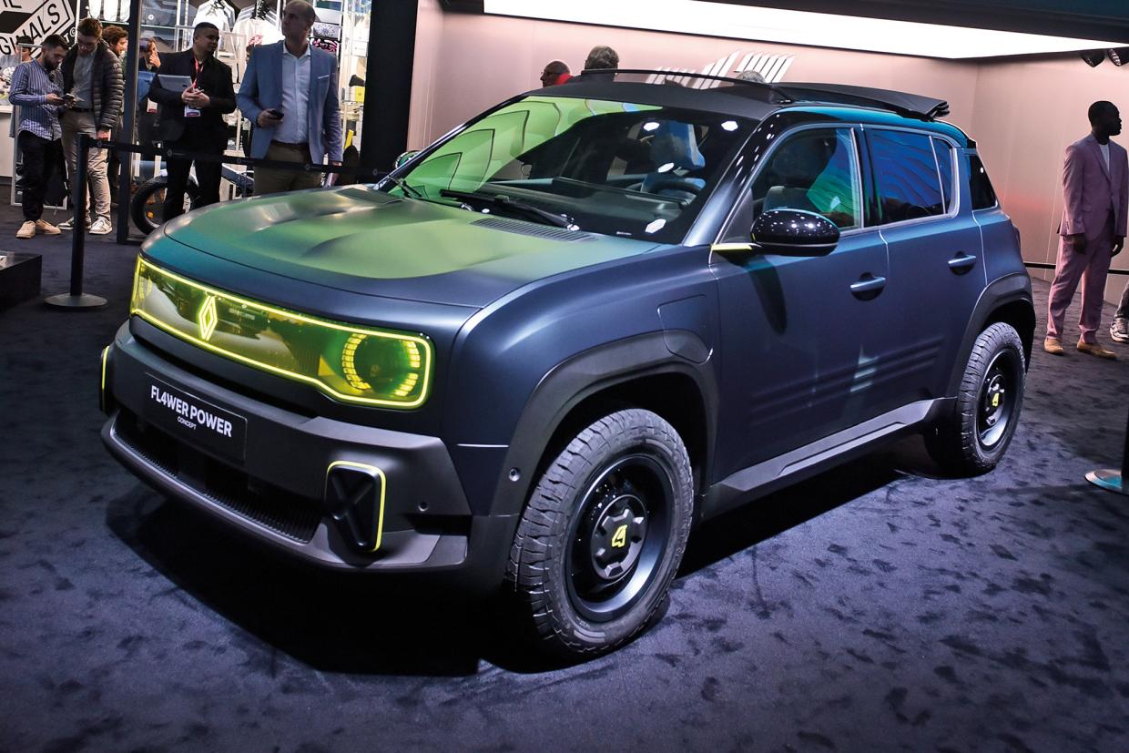 ปรากฏตัวแบบ WORLD PREMIERE หรือ “ครั้งแรกในโลก” เช่นกัน คือ RENAULT FL4WER POWER (เรอโนลต์ ฟลาเวอร์ เพาเวอร์) รถคันพิเศษที่ไม่ได้ทำเพื่อขาย แต่ทำเพื่อใช้แสดงในงานต่างๆ อย่างที่เรียกกันในภาษาอังกฤษว่า SHOW CAR (โชว์คาร์) ดัดแปลงแต่งเติมจากรถ RENAULT 4 E-TECH ELECTRIC (เรอโนลต์ 4 อี-เทค อีเลคทริค) ที่ผลิตเพื่อจำหน่าย โดยแต้มสีสัน และเพิ่มเติมรายละเอียดมากมายทั้งภายนอก และภายในห้องโดยสาร เพื่อให้มีรูปลักษณ์เป็นรถที่สอดรับกับธรรมชาติ และ GO-ANYWHERE หรือวิ่งไปที่ไหนก็ได้ ตัวถังเคลือบสีเขียวเข้ม เสริมแต่งด้วยสีเหลืองตามจุดเน้นต่างๆ เช่น แผงกระจังหน้า และดวงโคมไฟหน้า กันชนหน้า และกันชนท้าย ฯลฯ ส่วนภายในห้องโดยสารก็หุ้มเบาะทั้งแถวหน้า และแถวหลัง ด้วยวัสดุหุ้มที่มีลวดลายเป็นดอกไม้ นอกจากนั้น ยังเพิ่มขนาดล้อจาก 18 เป็น 20 นิ้ว ซึ่งส่งผลให้ GROUND CLEARANCE หรือความสูงใต้ท้องรถเพิ่มขึ้น 15 มม.