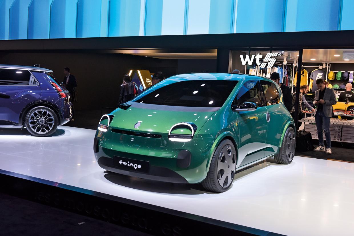 ผลงานใหม่อีกชิ้นหนึ่งที่ยักษ์ใหญ่เมืองน้ำหอมนำออกแสดงแบบ WORLD PREMIERE หรือ “ครั้งแรกในโลก” ที่งานนี้ คือ RENAULT TWINGO E-TECH ELECTRIC (เรอโนลต์ ทวิงโก อี-เทค อีเลคทริค) ซึ่งไม่ใช่รถแนวคิดหรือรถใหม่ที่กำลังจะออกตลาด หากแต่เป็น PROTOTYPE (พโรโทไทพ์) หรือต้นแบบของรถ RENAULT TWINGO รุ่นใหม่ (รุ่นที่ 4) ที่ต้องรอถึงปี 2026 จึงจะพบได้ในโชว์รูม พร้อมกับป้ายราคาค่าตัวที่จะต่ำกว่า 20,000 ยูโร (ประมาณ 740,000 บาทไทย) ซึ่งเป็นไปตามคำมั่นสัญญาของค่ายนี้ที่จะทำให้รถพลังงานไฟฟ้าเป็นรถเข้าถึงได้มากกว่าที่เป็นอยู่ปัจจุบัน ตัวถัง 5 ประตูแฮทช์แบค 4 ที่นั่ง ขนาดซูเพอร์มีนี มีจุดเด่นสะดุดตาอยู่หลายจุด ตัวอย่างเช่น (1) ดวงโคมไฟหน้ารูปวงกลมผ่าซีกที่ออกแบบอย่างเก๋ไก๋ และได้แรงบันดาลใจจากรถรุ่นแรกที่เริ่มผลิตเมื่อปี 1992 (2) ที่จับเปิดประตูซึ่งออกแบบเป็นรูปวงกลม (3) ช่องเจาะขนาดเล็ก 3 ช่อง บนด้านขวาของฝากระโปรง