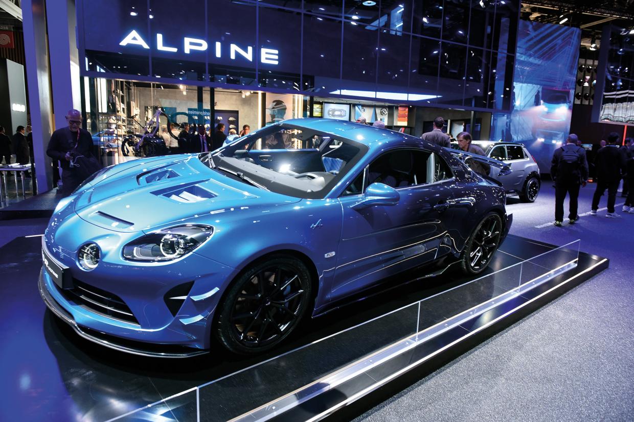 รถใหม่อีกคันหนึ่งของค่าย ALPINE ที่ปรากฏตัวแบบ WORLD PREMIERE หรือ “ครั้งแรกในโลก” ที่งานนี้ คือ รถแรง และเร็วติดป้ายชื่อ ALPINE A110 R ULTIME (อัลปีน อา 110 แอร์ อึลตีม) ในภาพเล็กขวามือ เป็น PRODUCTION CAR (พโรดัคชันคาร์) หรือรถผลิตเพื่อจำหน่าย ที่จะจำกัดจำนวนผลิตไว้เพียง 110 คันตามชื่อรถ และตั้งราคาค่าตัวรวมภาษีมูลค่าเพิ่มไว้ที่ระดับ 265,000 ยูโร (ประมาณ 9.0 ล้านบาทไทย) คือ แพงกว่ารถแบบใดๆ ของ RENAULT GROUP (เรอโนลต์ กรุพ) และเป็นรถผลิตในฝรั่งเศสที่แพงเป็นอันดับ 2 รองจากรถ BUGATTI CHIRON (บูกัตตี ชีรน) ติดตั้งเครื่องยนต์เทอร์โบเบนซิน 2.0 ลิตร ที่ให้กำลังสูงสุด 254 กิโลวัตต์/345 แรงม้า และแรงบิดสูงสุด 420 นิวทันเมตร/42.9 กก.ม. ติดตั้งล้อหน้าขนาด 18 นิ้ว และล้อหลังขนาด 19 นิ้ว อัตราเร่ง 0-100 กม./ชม. ทำได้โดยใช้เวลาเพียง 3.8 วินาที รถที่แสดงในงานมีตัวถังสีน้ำเงิน LA BLEUE ซึ่งจะจำกัดจำนวนไว้เพียง 15 คัน