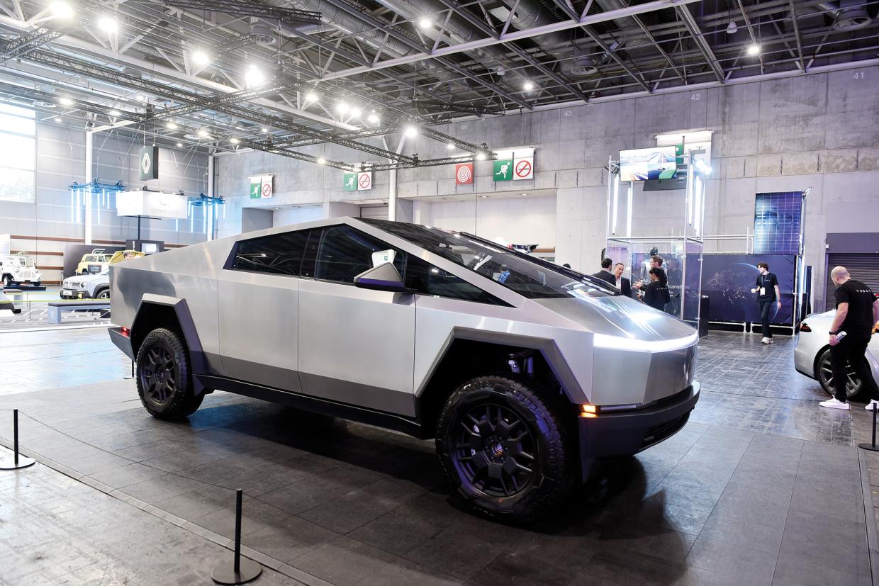 TESLA (เทสลา) แห่งสหรัฐอเมริกาที่หากินหลายทาง และเสียตำแหน่งผู้นำด้านการขายรถพลังไฟฟ้าให้แก่ค่ายจีนไปแล้ว ดึงดูดความสนใจของผู้ชมงานด้วย TESLA CYBERTRUCK (เทสลา ไซเบอร์ทรัค) รถพิคอัพซึ่งไม่เหมือนรถคันใด และไม่มีรถคันใดเหมือน เป็นรถพลังไฟฟ้าล้วนๆ ในตัวถังขนาด 5.682x2.200 (รวมกระจกมองข้างขณะพับ)x1.791 ม. ที่รูปทรงองค์เอวเหมือนเอาแผ่นเหล็กกล้าปลอดสนิมหลายแผ่นมาเชื่อมต่อเข้าด้วยกัน และแทบไม่มีส่วนใดเลยที่เป็นเส้นโค้ง เป็นรถขับเคลื่อนทุกล้อสุดไฮเทค ที่มีขุมพลังขับเคลื่อนให้เลือกใช้ 2 แบบ คือ (1) ขับเคลื่อนทุกล้อด้วยพลังของมอเตอร์ไฟฟ้า 2 ชุด และแบทเตอรี LITHIUM-ION สามารถทำความเร็วสูงสุด 180 กม./ชม. กับวิ่งได้ไกล 546 กม. เมื่อชาร์จไฟเต็ม และวัดตามมาตรฐาน EPA (2) ขับเคลื่อนทุกล้อด้วยพลังของมอเตอร์ไฟฟ้า 3 ชุด และแบทเตอรี LITHIUM-ION สามารถทำความเร็วสูงสุด 209 กม./ชม. และวิ่งได้ไกล 483 กม.