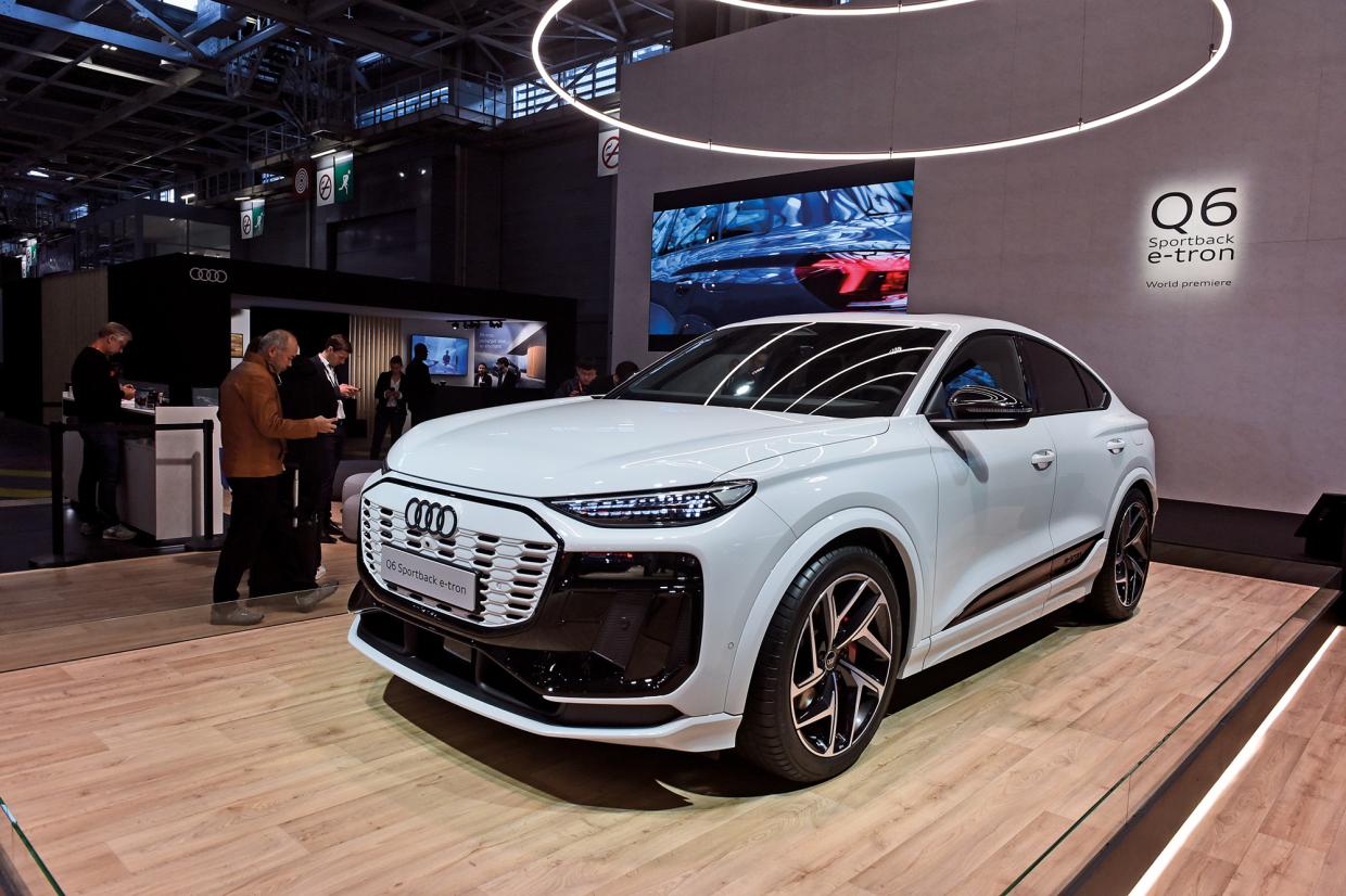 เรียกความสนใจจากสื่อมวลชนได้มาก และไม่น้อยหน้ารถสายพันธุ์เยอรมันคันใดที่ปรากฏตัวให้เห็นในงานนี้ คือ AUDI Q6 SPORTBACK E-TRON (เอาดี คิว 6 สปอร์ทแบค อี-ทรอน) ในภาพใหญ่ และภาพเล็กซ้ายมือ เป็นผลงานใหม่ล่าสุดของค่าย “สี่ห่วง” ซึ่งใช้งานนี้เป็นที่อวดตัวแบบ WORLD PREMIERE หรือ “ครั้งแรกในโลก” เป็น COMPACT LUXURY CROSSOVER SUV หรือรถกิจกรรมกลางแจ้งข้ามพันธุ์ระดับหรูขนาดเล็กกะทัดรัด ในตัวถังขนาด 4.771x1.965x1.665 ม. ที่มีค่าสัมประสิทธิ์แรงต้านอากาศ 0.26 และส่วนท้ายมีรูปลักษณ์เหมือนรถเก๋งคูเป จะมีทั้งรถขับเคลื่อนล้อหลัง รถขับเคลื่อนทุกล้อ และมีแบทเตอรีให้เลือก 2 ขนาด รถโมเดลหัวกะทิ คือ AUDI SQ6 SPORTBACK E-TRON ติดตั้งระบบขับเคลื่อนทุกล้อซึ่งใช้มอเตอร์ไฟฟ้า 2 ชุด ให้กำลังรวม 360 กิโลวัตต์/489 แรงม้า ทำงานร่วมกันกับแบทเตอรีขนาด 100 กิโลวัตต์ชั่วโมง เดินทางได้ไกลถึง 656 กม. เมื่อชาร์จไฟเต็ม