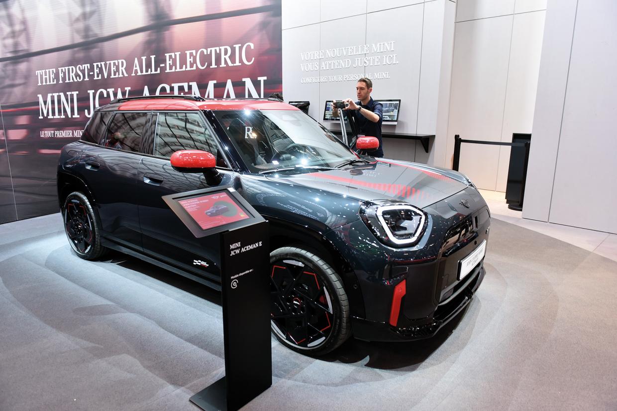 ค่าย MINI (มีนี) มีรถที่ปรากฏตัวแบบ WORLD PREMIERE หรือ “ครั้งแรกในโลก” ที่งานนี้ 2 คัน โดยคันแรกที่เห็นในภาพล่างซ้ายมือ คือ MINI JOHN COOPER WORKS ELECTRIC (มีนี จอห์น คูเพอร์ เวิร์คส์ อีเลคทริค) เป็นโมเดลใหม่ล่าสุด และโมเดลหัวกะทิของรถพลังไฟฟ้าล้วนๆ MINI COOPER ELECTRIC (มีนี คูเพอร์ อีเลคทริค) ที่เริ่มจำหน่ายในหลายประเทศของยุโรปเมื่อต้นปี 2024 รถโมเดลใหม่นี้ติดตั้งระบบขับเคลื่อนล้อหน้า ซึ่งใช้มอเตอร์ไฟฟ้าขนาด 190 กิโลวัตต์/258 แรงม้า ทำงานร่วมกันกับแบทเตอรี LITHIUM-ION ขนาดความจุรวม 54.2 กิโลวัตต์ชั่วโมง สามารถทำอัตราเร่ง 0-100 กม./ชม. ใน 5.9 วินาที และทำความเร็วสูงสุด 200 กม./ชม. กรณีชาร์จไฟเต็ม และวัดตามมาตรฐาน WLTP จะเดินทางได้ไกล 371 กม. ในระยะแรกค่าย MINI จะผลิตรถโมเดลนี้ในสาธารณรัฐประชาชนจีนเหมือนรถโมเดลอื่นๆ ซึ่งมีอยู่ 2 โมเดล และคาดหมายว่า จะเริ่มการผลิตในอังกฤษได้ในปี 2026