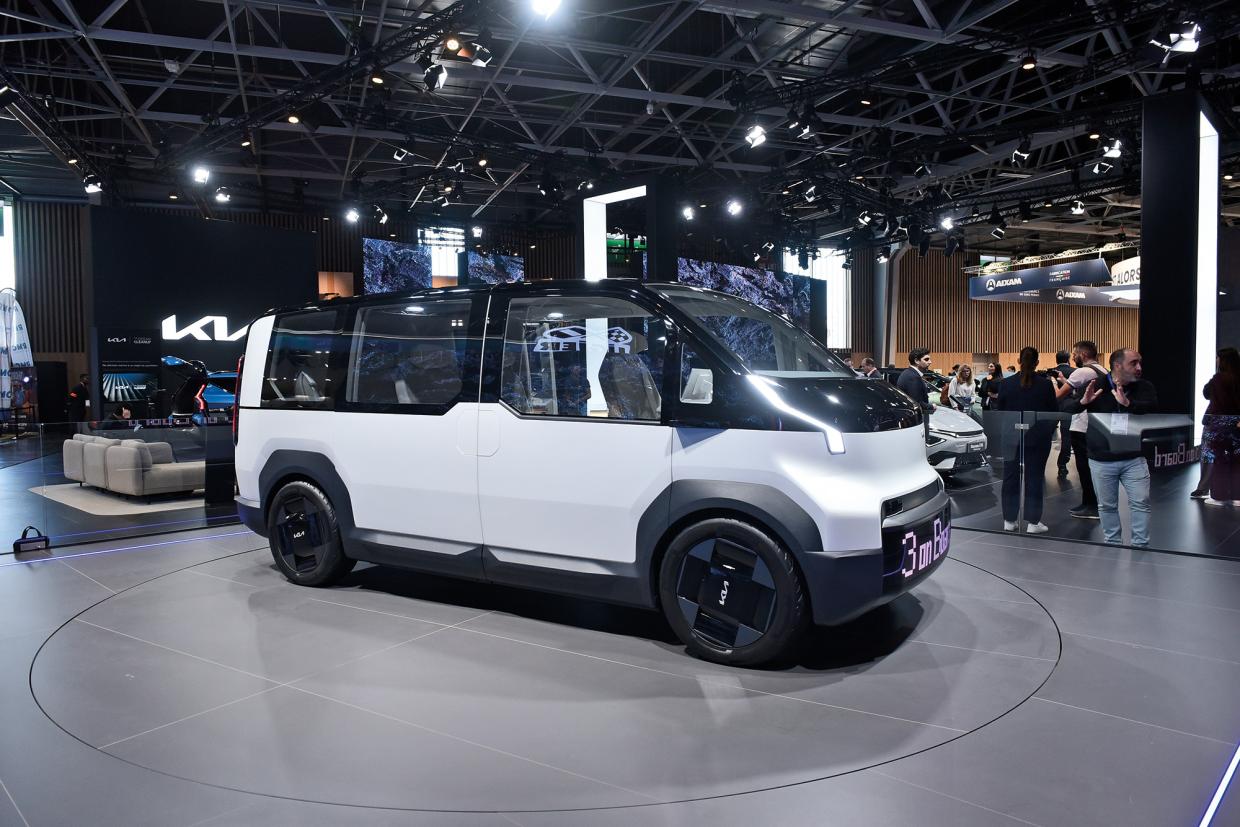 ในบูธของค่าย KIA (เกีย) ผู้ผลิตรถยนต์จากเมืองโสมเพียงรายเดียวในงานนี้ มีรถใหม่ปรากฏตัวให้เห็นหลายคัน ทั้งรถแนวคิด และรถผลิตเพื่อจำหน่าย คันที่ดูสะดุดตา และเรียกความสนใจจากผู้คนได้มากที่สุด แม้ไม่ได้เป็นการปรากฏตัวแบบ “ครั้งแรกในโลก” คือ KIA PV5 CONCEPT (เกีย พีวี 5 คอนเซพท์) คันที่เห็นในภาพใหญ่ และภาพเล็กซ้ายมือ เป็นรถแนวคิดในรูปลักษณ์ของ PASSENGER VAN หรือรถตู้บรรทุกคน และเป็นแม่แบบของรถผลิตเพื่อจำหน่ายที่ค่ายนี้ตั้งใจจะนำออกสู่โชว์รูมในฤดูร้อนของปี 2025 (ประมาณไตรมาส 3) เป็นรถพลังไฟฟ้าล้วนๆ ที่ผู้ผลิตรถยนต์เมืองโสมยืนยันว่า ผู้ใช้จะไร้ปัญหาเรื่องการชาร์จไฟแบทเตอรี เพราะการชาร์จไฟ 10-80 % แบบเร่งด่วน ด้วยไฟฟ้ากระแสตรง (DC) ณ สถานีจ่ายไฟ ใช้เวลาไม่ถึง 30 นาที แถมบอกด้วยว่า ขณะนี้มีจุดชาร์จไฟอยู่มากกว่า 780,000 จุด ใน 28 ประเทศของยุโรป และรถแบบนี้จะประกันการใช้งานถึง 7 ปี หรือ 150,000 กม.