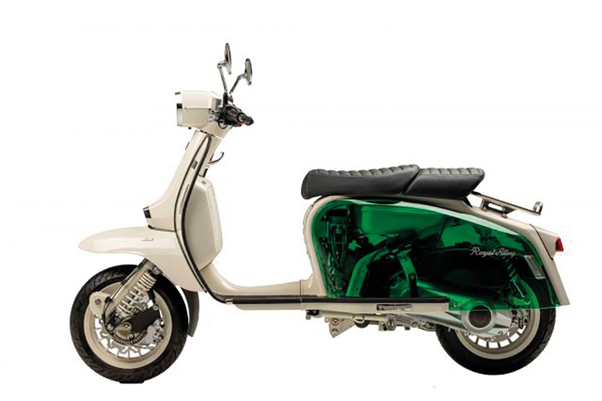 ROYAL ALLOY GP150F(MT) (รอยัล อัลลอยด์ จีพี150 เอฟ ) สกู๊ตเตอร์แนวเรโทร โดดเด่นด้วยฝาข้างอครีลิคใส มองเห็นตัวเครื่องยนต์ เป็นดีไซจ์นที่แตกต่าง สะดุดตา พร้อมขุมพลังในพิกัด 150 ซีซี.