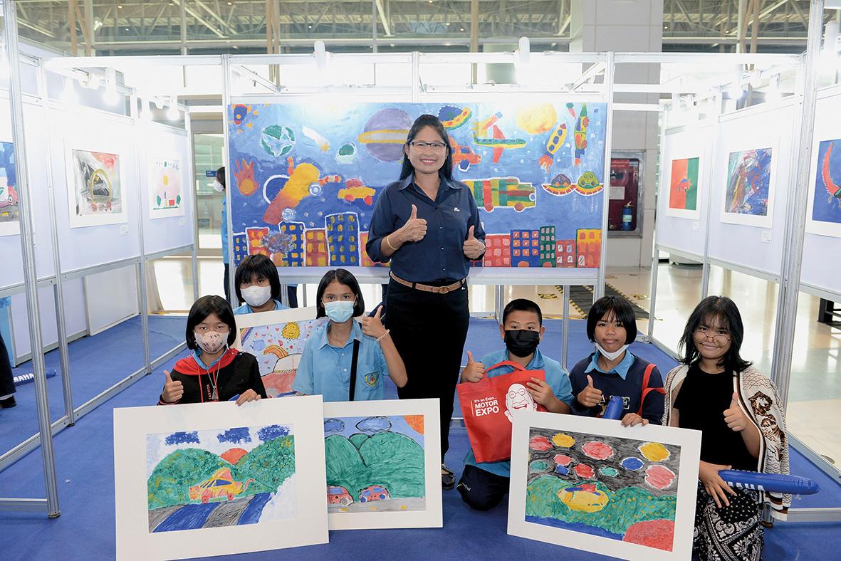 ชมนิทรรศการภาพวาดของเยาวชนที่เป็นสมาชิกและเครือข่ายชมรม “ศิลปินน้อย MOTOR EXPO” ภายใต้แนวคิด “จิตวิญญาณแห่งนวัตกรรม…ยานยนต์ล้ำอนาคต” (INNOVATIVE SPIRIT…FUTURISTIC VEHICLES)