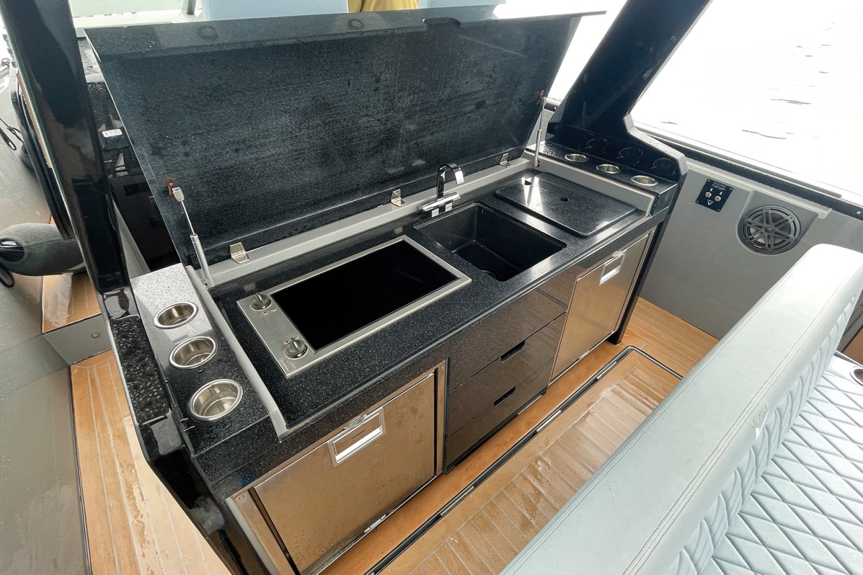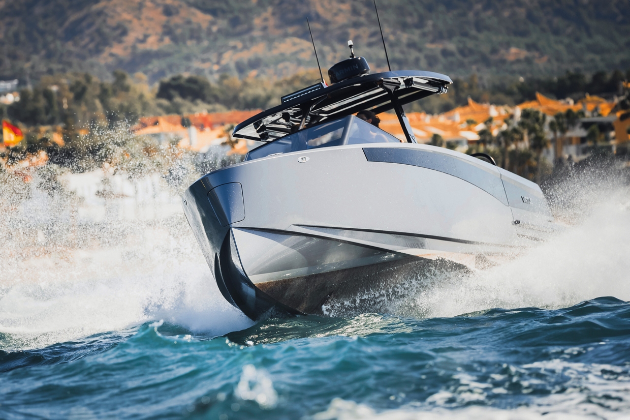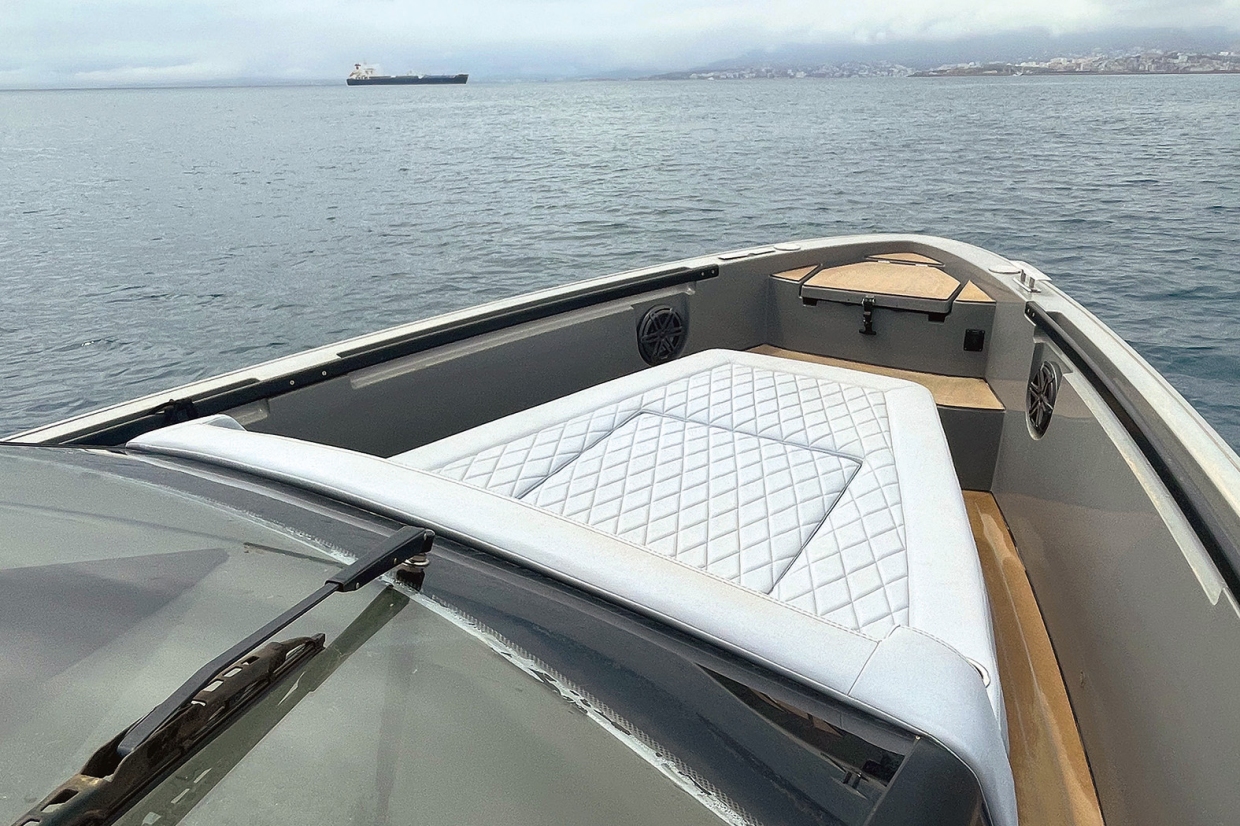 หรือหากต้องการปรับลดลงอีก คุณอาจเลือกใช้เครื่องยนต์เดี่ยว 250 แรงม้า หรือแม้กระทั่งติดตั้งเครื่องยนต์ OUTBOARD ไฟฟ้าคู่จาก EVOY ที่เปลี่ยนแนวทางการใช้งานไปอีกแบบ แต่ถ้าคุณอยากเพิ่มความเร็วให้เหมาะกับดีไซจ์นที่เน้นความแรงของ V10 การติดตั้งเครื่องยนต์คู่ 300 แรงม้า จะช่วยเพิ่มความเร็วสูงสุดได้ถึงประมาณ 50 นอท