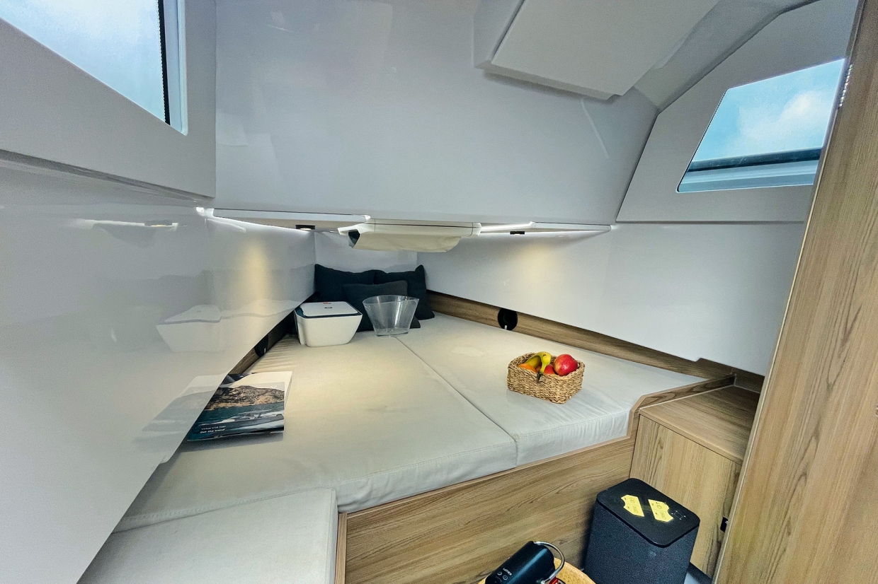 แต่พื้นที่ภายในที่ค่อนข้างจำกัด หมายความว่า คุณไม่สามารถยืนได้อย่างเต็มที่ และแม้จะค้นหาอย่างหนักก็ไม่พบฟีเจอร์เพิ่มเติม เช่น โคมไฟอ่านหนังสือ หรือปลั๊กไฟในเรือลำที่ใช้ทดสอบ อย่างไรก็ตาม ความสว่างภายในห้องโดยสารยังค่อนข้างดีด้วยหน้าต่างด้านข้างขนาดใหญ่ที่จุดทางเข้า