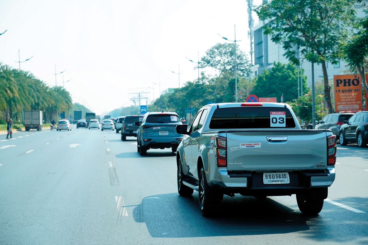 เที่ยงวันนี้ เราได้เจอกับฝูงรถทดสอบ ISUZU 2.2 DDI MAXFORCE จำนวน 9 คัน พร้อมด้วยรถลีเดอร์คาราวาน, รถตู้นำขบวนของเวียดนาม และรถเซอร์วิศ ปิดท้ายขบวน กฎหมายจราจรของเวียดนาม ค่อนข้างเด็ดขาดมาก ในบางช่วงของเส้นทาง ถ้าเราขับรถอยู่ในเขตชุมชน หรือเมือง เราต้องขับที่ความเร็วไม่เกิน 50 กม./ชม. พ้นจากเขตเมือง ใช้ความเร็วได้ 60 กม./ชม. และถ้าขับบนทางด่วน หรือไฮเวย์ ใช้ความเร็วได้ 100-120 กม./ชม.