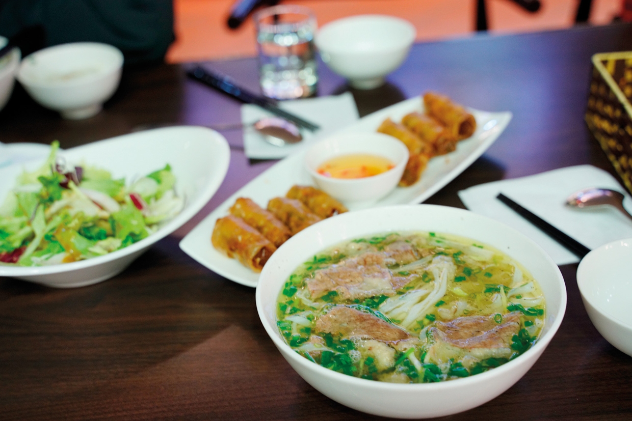ชิมอาหารหลากหลาย ทั้งอาหารจีน และเวียดนาม เมนูต่างๆ เน้นวัตถุดิบพื้นบ้านเป็นหลัก ปลาน้ำตกนึ่งซีอิ๊ว เสิร์ฟพร้อมเมนูซุปไก่ดำ และผัดผัก ส่วนอาหารเวียดนาม แน่นอนว่า “เฝอ” เป็นไฮไลท์ปิดท้ายของทริพนี้