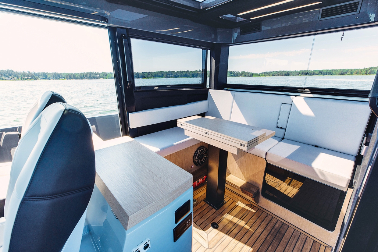 พื้นที่นี้ได้รับประโยชน์สูงสุดจากการเพิ่มความยาวของ EXPLR 44 ทำให้พื้นที่กว้างขวาง และโปร่งสบาย อีกทั้งเฟอร์นิเจอร์ในห้องนักบินที่ออกแบบให้เตี้ยยังช่วยให้มุมมองด้านหลังเปิดกว้าง ทำให้สามารถมองผ่านเครื่องยนต์นอกเรือไปยังท้ายเรือได้อย่างสะดวก เมื่อพับพนักพิงลง