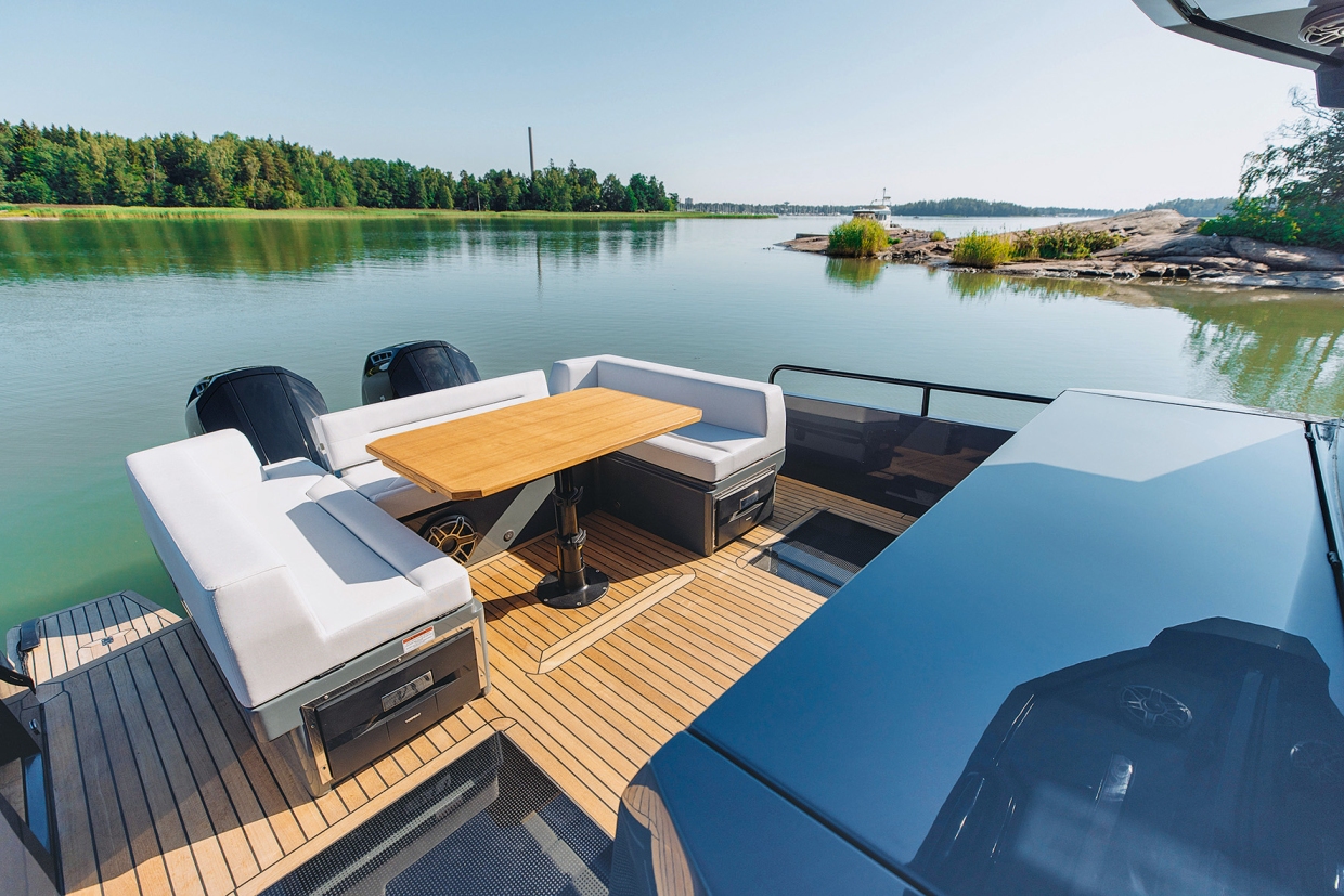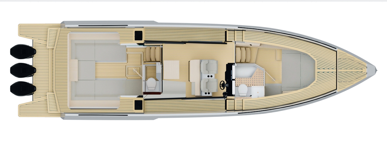 ในแง่ของแนวคิด เรือรุ่นใหม่นี้ได้รับการออกแบบให้มีทั้งความหรูหรา และความยืดหยุ่น เพื่อให้สามารถก้าวข้ามตลาดในแถบประเทศนอร์ดิค และยุโรปเหนือ และกลายเป็นตัวเลือกที่น่าสนใจในทะเลเมดิเตอร์เรเนียน และแคริบเบียนด้วย ส่วนหลักการออกแบบพื้นฐานก็ตรงไปตรงมา ตัวเรือใช้ดีไซจ์นแบบ WALKAROUND มีห้องควบคุมอยู่ตรงกลาง และดาดฟ้าเปิดทั้งด้านหน้า และด้านหลัง แต่สิ่งที่แตกต่าง คือ การยกระดับดาดฟ้าด้านท้าย และด้านหัวเรือให้สูงขึ้น ขณะที่ห้องควบคุมยังคงอยู่ในระดับต่ำกว่า ทำให้เกิดห้องโดยสารส่วนตัว 2 ห้องที่ปลายทั้ง 2 ฝั่งของเรือ ในขณะเดียวกันก็ยังคงรักษาเส้นพโรไฟล์ และลดแรงต้านลมได้เป็นอย่างดี