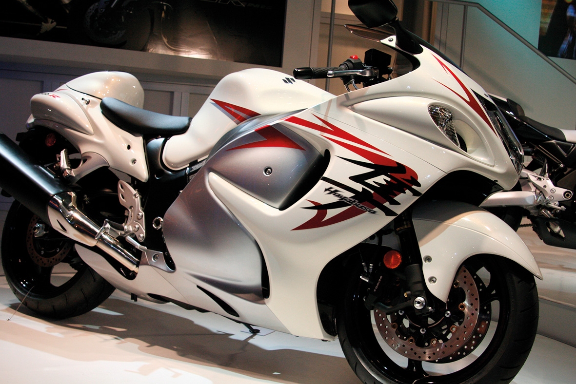 แม้ธุรกิจรถยนต์ของพวกเขาจะเน้นไปที่รถเล็ก แต่กับธุรกิจรถจักรยานยนต์นั้นกลับแตกต่างออกไป เพราะรถจักรยานยนต์ SUZUKI โด่งดังในเรื่องสมรรถนะที่จัดจ้าน โดยตระกูลของรถจักรยานยนต์ที่ยังคงโด่งดังอยู่ในทุกวันนี้ คือ เจ้านกเหยี่ยว เจ้าแห่งความเร็ว SUZUKI HAYABUSA (ซูซูกิ ฮายาบูสะ) โดยเมื่อคราวเปิดตัวครั้งแรกในปี 1999 ก็คว้าตำแหน่งรถจักรยานยนต์ประเภทพโรดัคชันที่เร็วที่สุดในโลกไปครองทันที ด้วยความเร็วปลายกว่า 312 กม./ชม. และในปี 2011 มันได้ถูกติดตั้งเทอร์โบ พร้อมทูนให้แรงเป็นพิเศษ เพื่อส่งไปสร้างสถิติโลกสำหรับรถจักรยานยนต์ และทำความเร็วได้ถึง 502 กม./ชม. ปัจจุบัน “HAYABUSA” รุ่นพโรดัคชัน ถูกพัฒนาออกมาเป็นยุคที่ 3 โดยใช้เครื่องยนต์แบบ 4 สูบแถวเรียง 4 จังหวะ ระบายความร้อนด้วยน้ำ ความจุ 1,340 ซีซี ไม่มีระบบอัดอากาศ ให้กำลัง 190 แรงม้า และได้รับความนิยมในกลุ่มผู้ชื่นชอบเครื่องยนต์แรงม้าสูง และน้ำหนักเบา โดยรถสปอร์ทหลายรุ่นได้เลือกใช้ขุมพลัง HAYABUSA อาทิ RADICAL SR1 (เรดิคอล เอสอาร์ 1) และ CATERHAM 7 (แคเทอร์แฮม 7) เป็นต้น