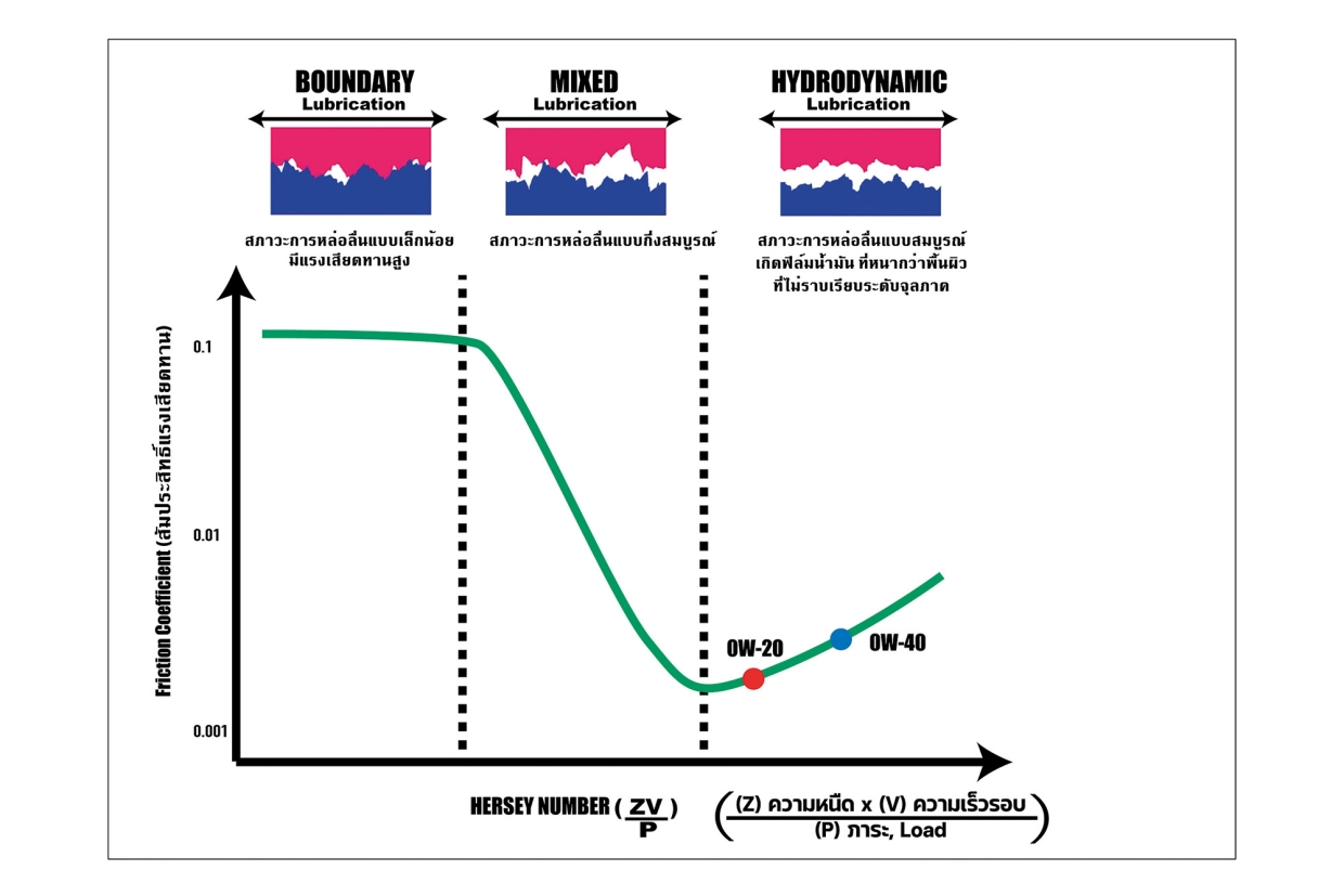 ความแตกต่างด้านการป้องกันการสึกหรอของน้ำมันเครื่องที่มีค่าความหนืดแตกต่างกัน สามารถอธิบายได้ด้วยกราฟที่มีชื่อว่า STRIBECK-HERSEY CURVE
