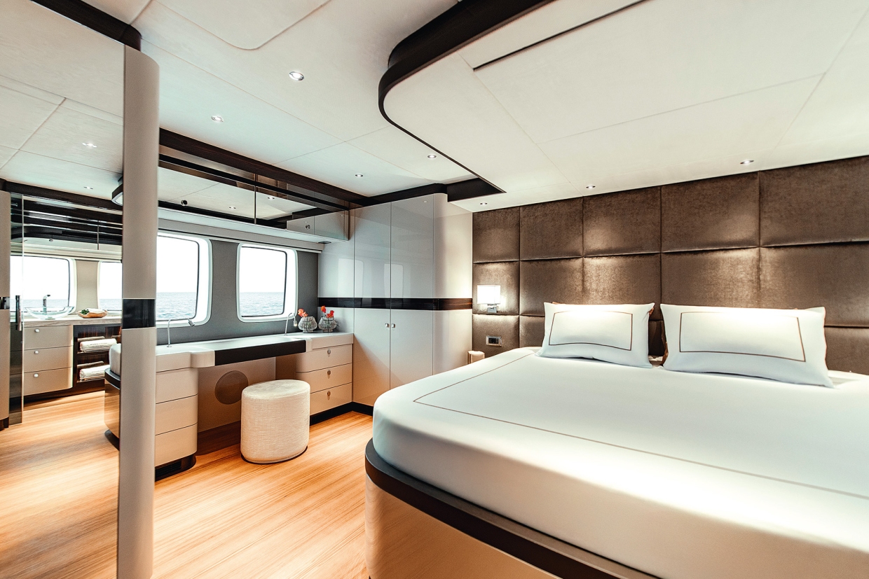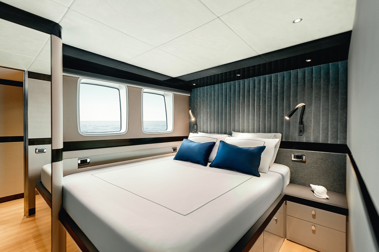 สำหรับเจ้าของ และแขก ห้องพักจะอยู่ถัดไปด้านท้าย โดยห้องนอนเจ้าของเรือกินพื้นที่เต็มลำในตำแหน่งกึ่งกลาง อยู่ด้านหน้าห้องเก็บเรือเสริม ซึ่งช่วยสร้างระยะกั้นที่มีประโยชน์ระหว่างเตียงนอนของเจ้าของกับห้องเครื่องยนต์