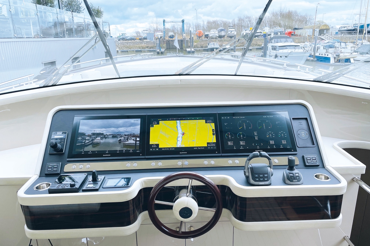 เพียงปรับระดับเล็กน้อย เครื่องก็สามารถเร่งความเร็วเพิ่มขึ้นได้ประมาณ 1 นอท พร้อมกับลดระดับเสียงลงอีก 2 เดซิเบล เรือยังคงให้ความรู้สึกเหมือนเรือ SEMI-DISPLACEMENT ที่วิ่งเร็ว แทนที่จะเป็นเรือ PLANING เต็มรูปแบบ และเนื่องจากเรามีระวางน้ำหนักลึกเพียง 1.5 ม. และน้ำลึกเพียง 3 ม. จึงทำให้ท้ายเรือจมลึกกว่าปกติเล็กน้อยเมื่อเร่งความเร็ว แต่สิ่งที่โดดเด่นจริงๆ คือ ความประณีตที่ เป็นจุดขายของ ZEELANDER ตลอดมา ตำแหน่งกึ่งกลางของพวงมาลัย ให้ทัศนวิสัยกว้างไกลผ่านกระจกบานใหญ่ชิ้นเดียว และแม้ในขณะที่เรือหยุดจอด ZEELANDER ระดับเสียงในห้องนั่งเล่นยังคงต่ำเพียง 35 เดซิเบล (A)