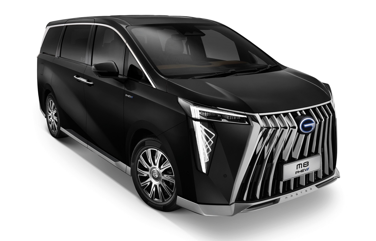GAC M8 (จีเอซี เอม 8) รถตู้เอมพีวีพลัก-อิน ไฮบริด ประตูสไลด์ เครื่องยนต์เบนซิน 2.0 พ่วงมอเตอร์ไฟฟ้า 373 แรงม้า แบทเตอรี 25.57 กิโลวัตต์ชั่วโมง วิ่งไกลสุด 1,032 กม./การชาร์จ 1 ครั้ง (WLTC)