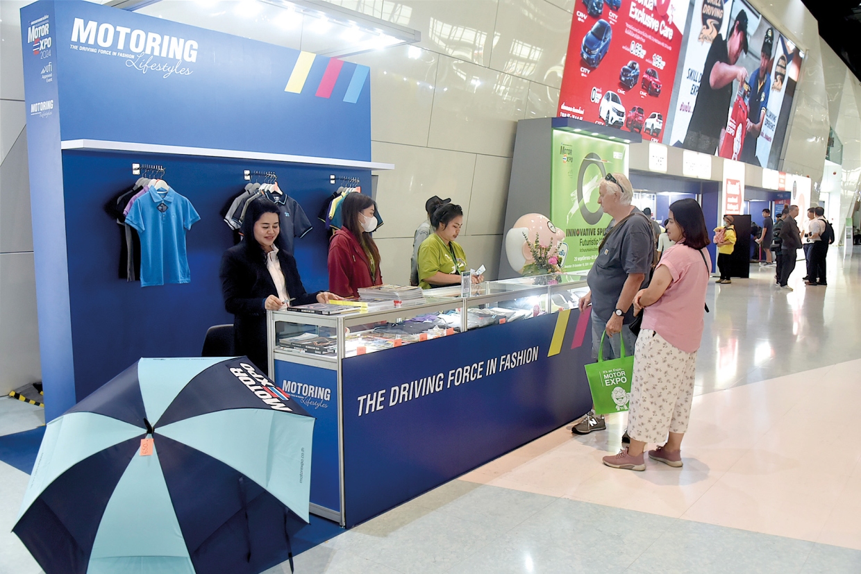 สินค้าที่ระลึกจากงาน “มหกรรมยานยนต์ ครั้งที่ 42” โดยผู้ชื่นชอบของสะสม ไม่ควรพลาด เช่น เสื้อที-เชิร์ท, เสื้อโพโล, หมวก, ลำโพง MR.MOTOR EXPO ฯลฯ