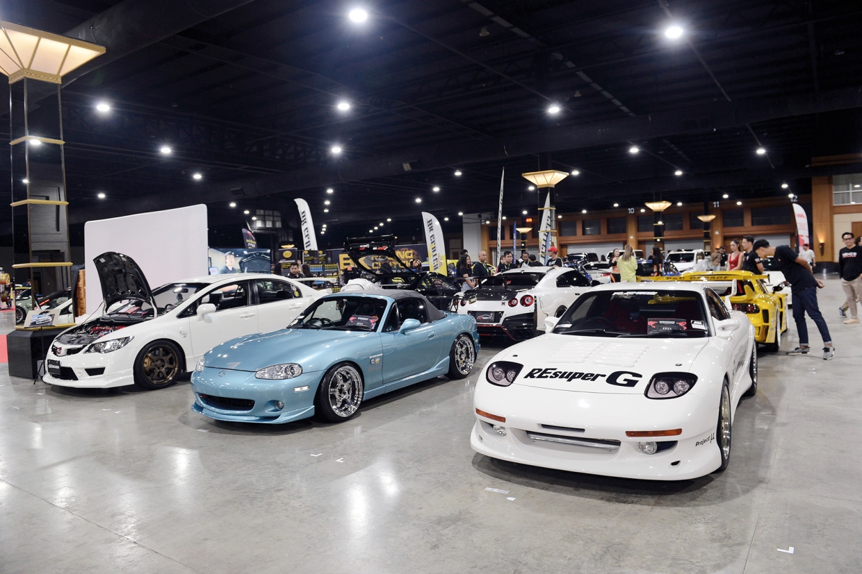 ชมรถแต่งหลากหลายสไตล์ มาจอดเรียงรายให้ผู้รักความเร็วได้ชม และถ่ายภาพกันอย่างใกล้ชิด