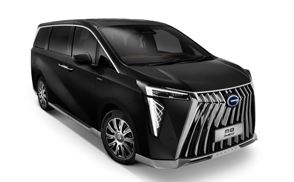 GAC M8 (จีเอซี เอม 8) รถตู้เอมพีวีพลัก-อิน ไฮบริด ประตูสไลด์ เครื่องยนต์เบนซิน 2.0 พ่วงมอเตอร์ไฟฟ้า 373 แรงม้า แบทเตอรี 25.57 กิโลวัตต์ชั่วโมง วิ่งไกลสุด 1,032 กม./การชาร์จ 1 ครั้ง (WLTC)