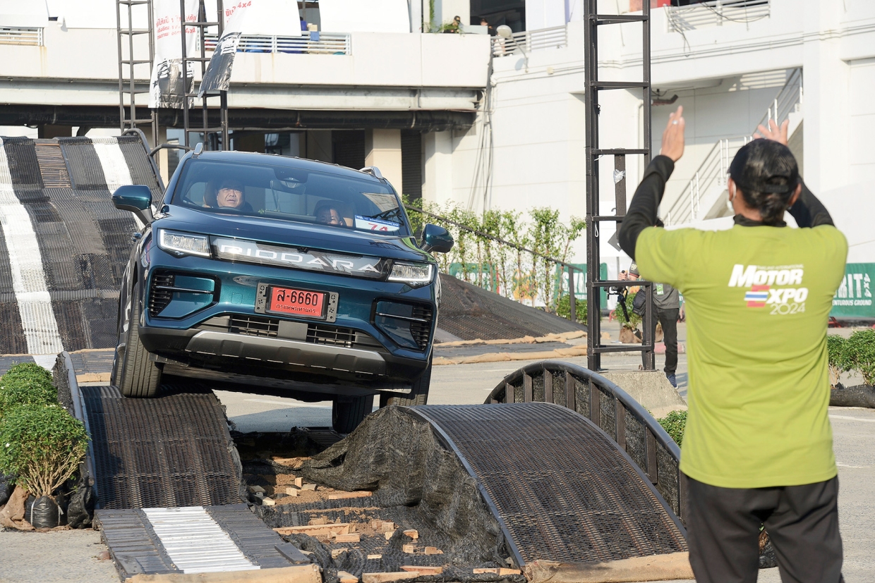 พื้นที่ทดลองขับรถรุ่นที่ผู้ชมงานสนใจ โดยมีผู้เชี่ยวชาญคอยให้คำแนะนำเพื่อความปลอดภัย บริเวณด้านหลังชาลเลนเจอร์