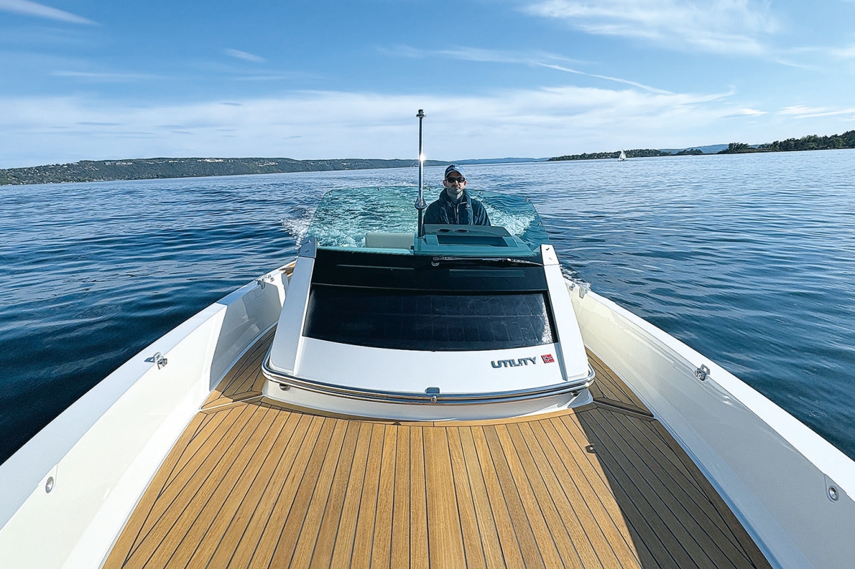 ตอนพบเรือลำนี้ เราแทบต้อง “บังคับตัวเอง” ให้ลืมสิ่งที่เคยรู้เกี่ยวกับทเรนด์ตลาดเรือสมัยใหม่ไปชั่วขณะ ลืมเรื่องพื้นที่ใช้สอยขนาดใหญ่ ลืมดาดฟ้าที่ขยายได้ และของเล่นอื่นๆ ที่เป็นที่นิยมไปให้หมด เพราะสิ่งที่อยู่ตรงหน้า เป็นอะไรที่เรียบง่าย และมีเป้าหมายชัดเจนกว่า นั่นคือ ท้องเรือแบบสเตพที่ลื่นไหล มีหัวเรือแหลมคมพร้อมมุมรับคลื่นที่ประณีต เสริมด้วยเชียร์ไลน์ที่โค้งอย่างนุ่มนวล ขนาบด้วยราวไม้สักเรียบหรู และท้ายเรือแบบเปิดที่สง่างาม โดยซ่อนเครื่องยนต์อินบอร์ดขนาดบึกบึนไว้ใต้ดาดฟ้าอย่างแนบเนียน