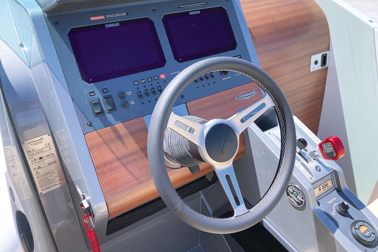 เรือลำนี้มอบทุกสิ่งที่แฟนๆ ของ CORMATE คาดหวังอย่างแท้จริง มันคือเรือสัปดาห์เอนด์ระดับไฮเอนด์ที่รวดเร็ว รูปลักษณ์งดงาม และมีเสน่ห์จากการผสมผสานระหว่างแนวคิดสปอร์ทสายสนามแข่งที่เรียบง่าย กับความหรูหราที่สุขุมแต่แฝงความพิเศษในรายละเอียด จากมุมมองของผู้ขับ นี่ไม่ใช่เรือที่คุณจะเชี่ยวชาญได้ตั้งแต่นาทีแรก ด้วยบุคลิกเฉพาะตัวของท้องเรือสเตพที่แข็งเป็นพิเศษ น้ำหนักเบา ความกว้างลำเรือที่แคบ กำลังเครื่องสูง และรูปแบบการควบคุมที่ไม่เหมือนใคร