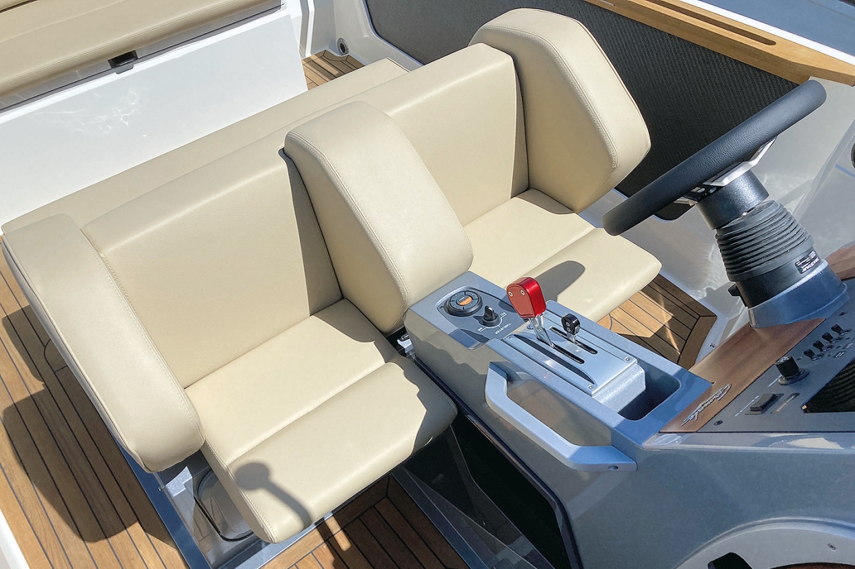 ในส่วนของตำแหน่งควบคุมเรือ ถือเป็นพื้นที่ที่น่าประทับใจอย่างแท้จริง ตัวเบาะ และที่พิงถูกออกแบบให้ลึก มั่นคง พร้อมการรองรับด้านข้างที่ยอดเยี่ยม กระจกบังลมเอียง และไร้กรอบเพื่อลดน้ำหนัก แต่ก็ยังมีจุดให้จับยึดเพียงพอชดเชยได้อย่างเหมาะสม สวิทช์แบบโยกบนแผงหน้าปัด รวมถึงสวิทช์ควบคุมทรัสเตอร์ ให้บรรยากาศคล้ายเครื่องบินขับไล่ยุคสงครามโลกครั้งที่ 2 อย่างมีเสน่ห์ สวิทช์โยกแบบเรียบง่ายที่ใช้ควบคุม TAB ฝั่งซ้ายเพียงฝั่งเดียว สำหรับปรับสมดุลด้านข้าง ก็เป็นอีกตัวอย่างหนึ่งของการออกแบบที่ผสานทั้งสไตล์ และการใช้งานจริง