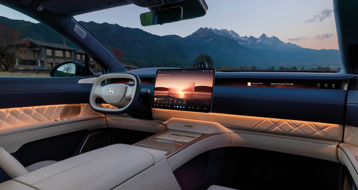 มาดูรุ่น ET9 ซึ่งเป็นรถเก๋งหรูระดับโลกกันบ้างครับ ด้วยตัวรถที่ยาวถึง 5.325 เมตร ไม่ใช่เพียงเพื่อความสบายของผู้โดยสาร แต่ยังเพื่อความหรูหรา สง่า เมื่อมองจากภายนอกด้วย ความกว้างของตัวรถ 2.02 เมตร ก็อยู่ในระดับเหนือคู่แข่งทุกราย ความหรูหรา และความสะดวกสบาย เริ่มตั้งแต่ประตูด้านคนขับ และคนนั่งด้านหลังฝั่งตรงข้ามกับคนขับ ที่เปิดอ้าต้อนรับแบบอัตโนมัติ ทันทีที่ผู้ขับ หรือผู้โดยสาร มาถึงระยะที่เหมาะสม พร้อมกับแสงไฟส่องพื้น ที่คลี่บานตามมุมที่ประตูอ้า สวยงามอย่างน่าทึ่ง ไม่ต่างจากการคลี่พัด พร้อมกับการลดระดับของตัวรถลงถึง 5 เซนติเมตร พร้อมไปกับการย่อลงของเบาะนั่ง ให้อยู่ที่ระดับความสูงจากพื้น 63.8 เซนติเมตร ซึ่งเป็นค่าเฉลี่ยที่ได้จากงานวิจัย ว่าเป็นความสูงที่ช่วยให้การก้าวขึ้นนั่งสะดวก และสบายที่สุด ที่นั่ง ชิ้นส่วน และอุปกรณ์ต่างๆ ภายในห้องโดยสาร ให้ความสะดวก และหรูหรา อย่างที่คนที่ไม่คุ้นกับรถระดับนี้ จะต้องตะลึง