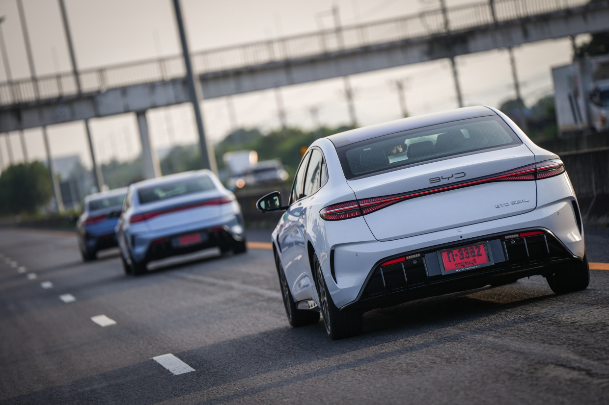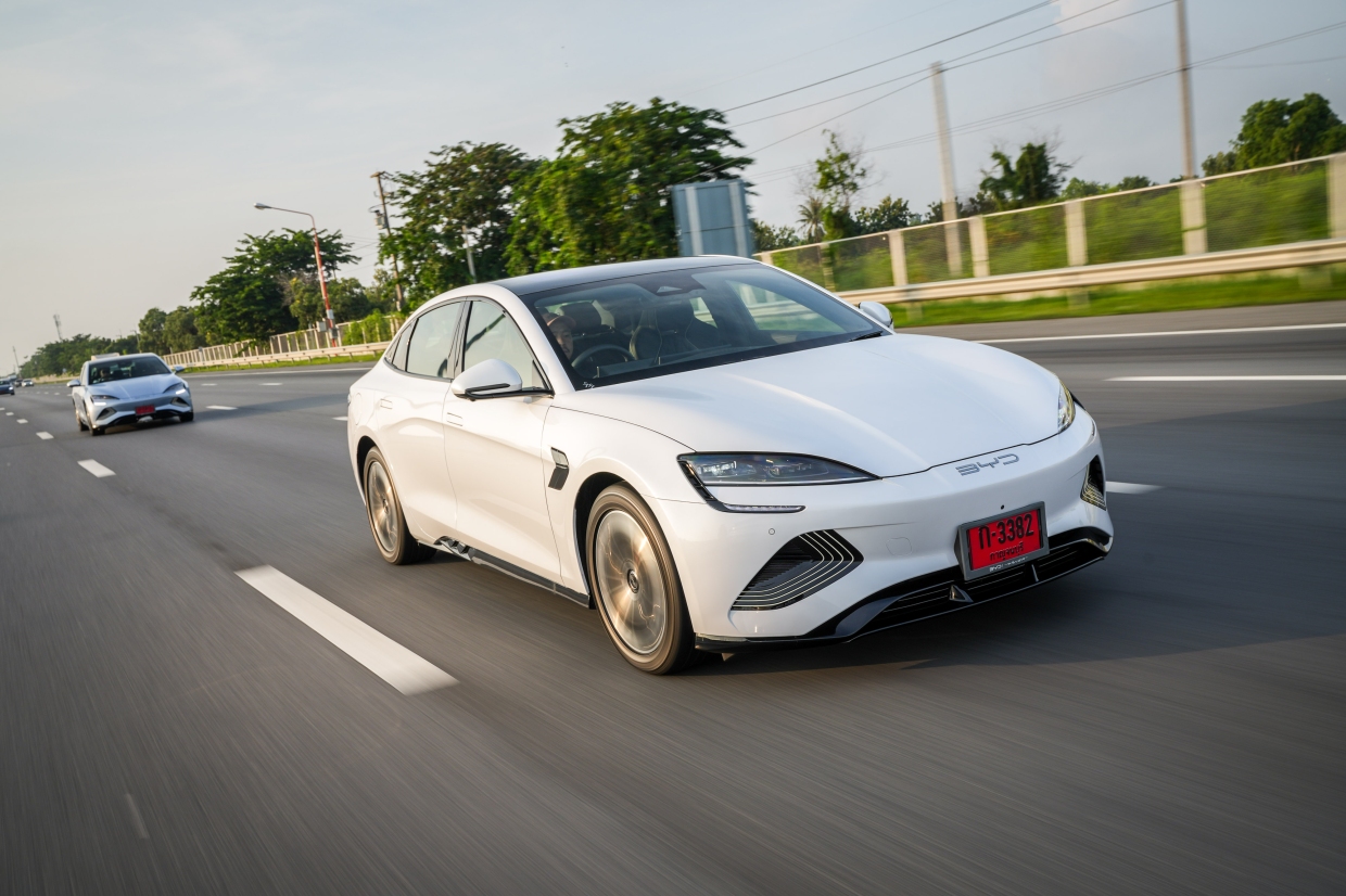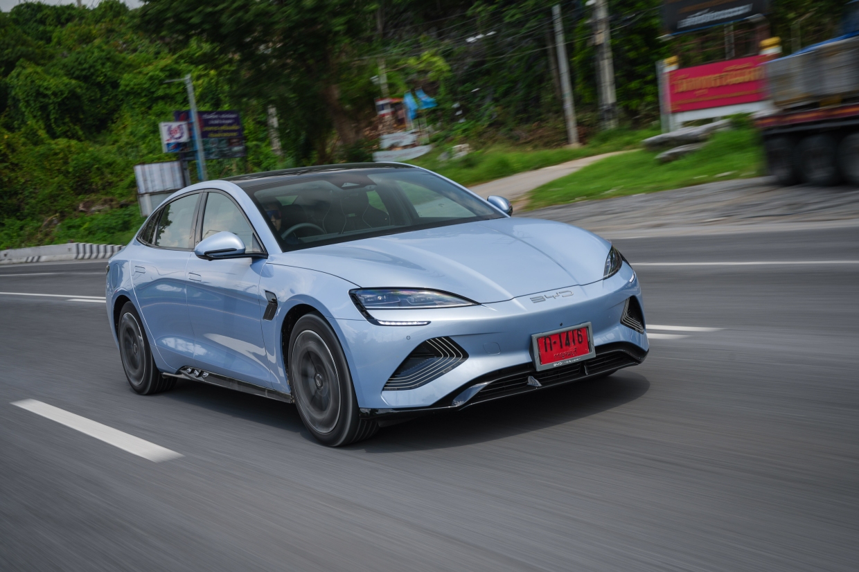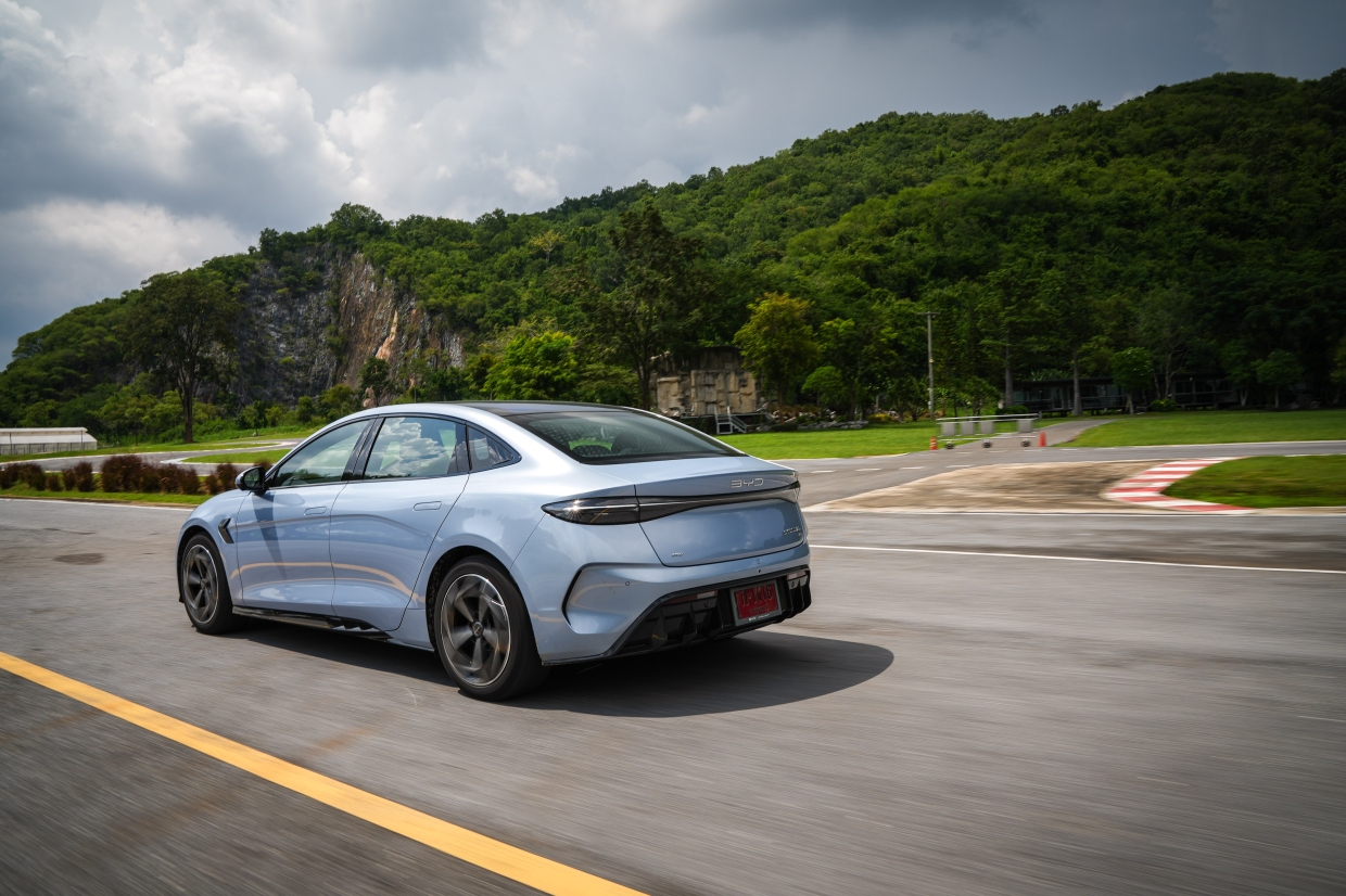 เราเริ่มการทดลองขับกับรุ่น Dynamic ซึ่งเป็นรุ่นพื้นฐาน มอเตอร์ฟฟ้า 204 แรงม้า (PS) ซึ่งมีติตั้งในรถยนต์แต่ละรุ่นของ BYD ในบ้านเรามาแล้ว ไม่ว่าจะเป็น Atto 3 และ Dolphin (รุ่น Extended Range) การเข้ามาอยู่ในตัวถังซีดานขนาดใหญ่ของ Seal อัตราเร่งโดยรวมยังมีความไหลลื่น ใช้งานทั่วไปได้สบาย การเร่งแซงทำได้ทันใจ (ในโหมด Normal) ใครที่ต้องการซีดานขับสบายๆ ในราคาที่เหมาะสม ได้ความกว้างขวางไม่แพ้รุ่นย่อยอื่นๆ รุ่น Dynamic ก็สามารถรองรับได้เหมาะสม ขณะที่พวงมาลัยมีน้ำหนักค่อนข้างเบา แต่มีน้ำหนักกว่า Atto 3 และ Dolphin เล็กน้อย ขณะที่ระบบรองรับยังคงเน้นความนุ่มนวล ตัวรถนิ่งดีมากขณะใช้ความเร็วสูงบนทางหลวง (เหมาะสำหรับการขับทางไกล)