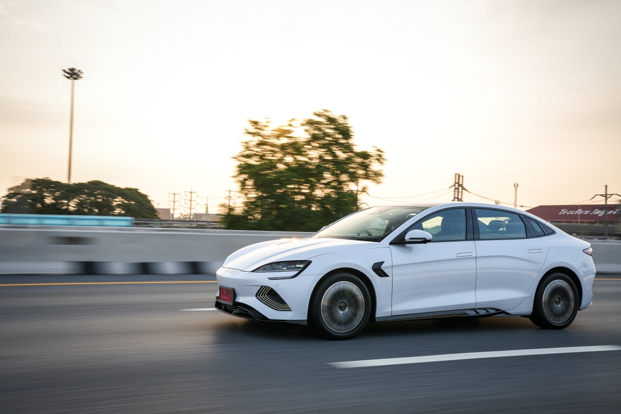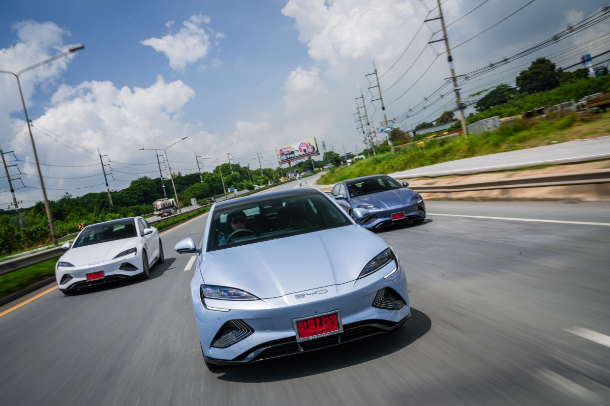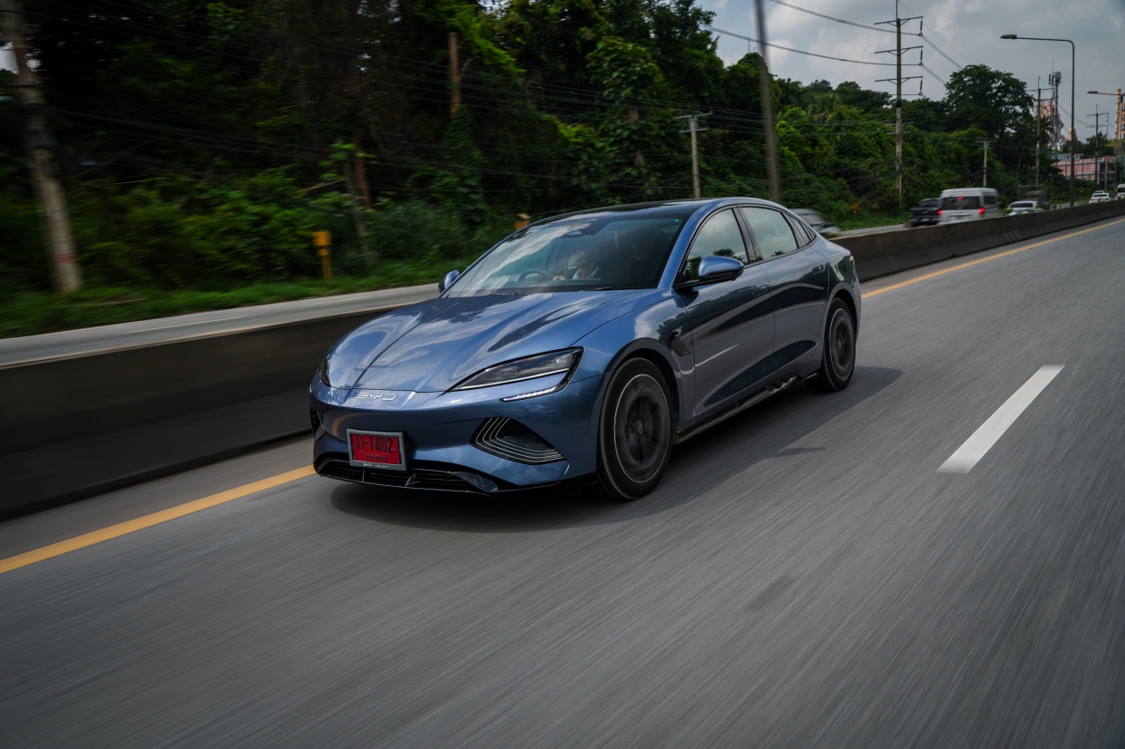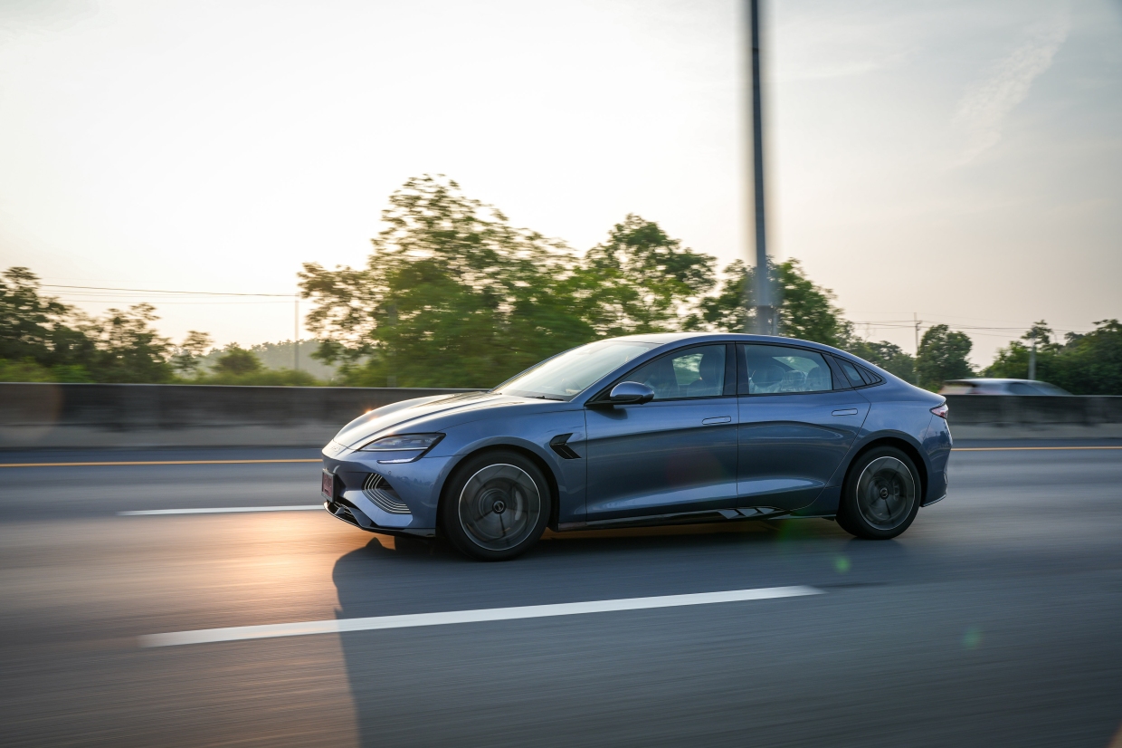 เราเริ่มการทดลองขับกับรุ่น Dynamic ซึ่งเป็นรุ่นพื้นฐาน มอเตอร์ฟฟ้า 204 แรงม้า (PS) ซึ่งมีติตั้งในรถยนต์แต่ละรุ่นของ BYD ในบ้านเรามาแล้ว ไม่ว่าจะเป็น Atto 3 และ Dolphin (รุ่น Extended Range) การเข้ามาอยู่ในตัวถังซีดานขนาดใหญ่ของ Seal อัตราเร่งโดยรวมยังมีความไหลลื่น ใช้งานทั่วไปได้สบาย การเร่งแซงทำได้ทันใจ (ในโหมด Normal) ใครที่ต้องการซีดานขับสบายๆ ในราคาที่เหมาะสม ได้ความกว้างขวางไม่แพ้รุ่นย่อยอื่นๆ รุ่น Dynamic ก็สามารถรองรับได้เหมาะสม ขณะที่พวงมาลัยมีน้ำหนักค่อนข้างเบา แต่มีน้ำหนักกว่า Atto 3 และ Dolphin เล็กน้อย ขณะที่ระบบรองรับยังคงเน้นความนุ่มนวล ตัวรถนิ่งดีมากขณะใช้ความเร็วสูงบนทางหลวง (เหมาะสำหรับการขับทางไกล)