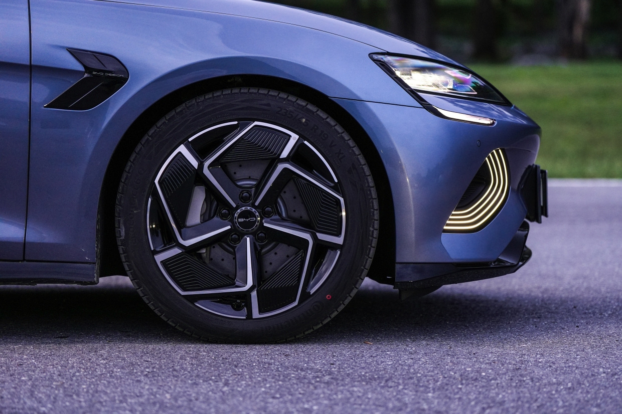 สำหรับรุ่น Performance ทางผู้จัดเปิดโอกาสให้มีการทดลองขับเพิ่มเติมในสนามทดสอบ (ณ สนามแข่ง 8Speed ไม่ไกลจากเส้นทางไป เขาใหญ่) ทั้งการเปลี่ยนเลนกะทันหัน และการขับขี่แบบสลาลอม หักเลี้ยวต่อเนื่อง เราพบว่าตัวรถสามารถตอบสนองได้น่าพอใจ แม้มีการหักเลี้ยวต่อเนื่อง ระบบขับเคลื่อน 4 ล้อตลอดเวลา ทำให้ตัวรถมีความมั่นคงดีมาก อาการโคลงมีให้สัมผัสพอประมาณ แต่ยังควบคุมได้ดังใจ นอกจากนี้มีการลองระบบ iTAC ที่จะคบคุมการส่งกำลังของมอเตอร์ไฟฟ้า หากมีการหักเลี้ยวค่อนข้างมาก พร้อมกับการกดคันเร่งลึก ระบบจะตัดการส่งกำลังให้อยู่ในระดับที่เหมาะสม ลดความเร็วลงมาขณะอยู่ในโค้ง นอกเหนือจากนี้ คือ การเข้าโค้งมุมแคบ และการกดคันเร่งเพื่อเรียกอัตราเร่ง สามารถทำในพริบตา สมกับพละกำลังระดับ 513 แรงม้า ดยรวมแล้ว เป็นรถยนต์ไฟฟ้าสมรรถนะสูง แต่มีระบบช่วยเหลือการขับขี่รองรับเพื่อความปลอดภัยไม่น้อยเช่นกัน