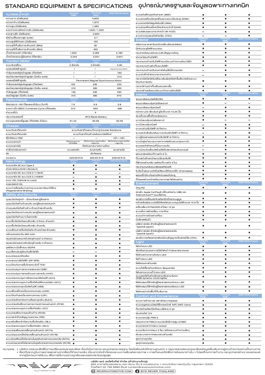 ตารางสเปคของ BYD Seal (รุ่นจำหน่ายในประเทศไทย)