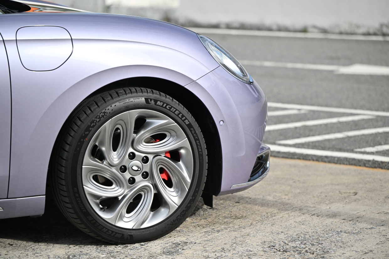 ดีไซน์ด้านหน้าของตัวรถถูกออกแบบตามหลักอากาศพลศาสตร์ของรถซูเพอร์คาร์เพื่อเพิ่มแรงกด ด้วยกระจังหน้าที่ถูกออกแบบตามประกายแสงบนผิวน้ำยามแสงแดดสะท้อนลงมา รับฝากระโปรงหน้าทรงหยดน้ำที่เว้าลงและนูนขึ้นทั้งสองด้าน ไฟหน้า Intelligent LED ทรงกลมแบบเรโทรเพื่อเพิ่มความสปอร์ทอย่างเต็มพิกัด มอบทั้งความสว่างและความปลอดภัยด้วยระบบอัจฉริยะ อาทิ ระบบเปิด/ปิดไฟหน้าอัตโนมัติ ระบบปรับไฟสูง/ต่ำอัตโนมัติ และฟังก์ชันหน่วงเวลาไฟส่องทางหลังดับเครื่อง (Follow Me Home) พร้อม Daytime Running Light และไฟตัดหมอกด้านหน้าแบบ LED หน้าต่างไร้กรอบที่เป็นกระจกแบบ 2 ชั้น เพื่อช่วยดูดซับเสียง โดยจะเลื่อนลงเมื่อเปิดประตู และเลื่อนปิดโดยอัตโนมัติเมื่อปิดประตู