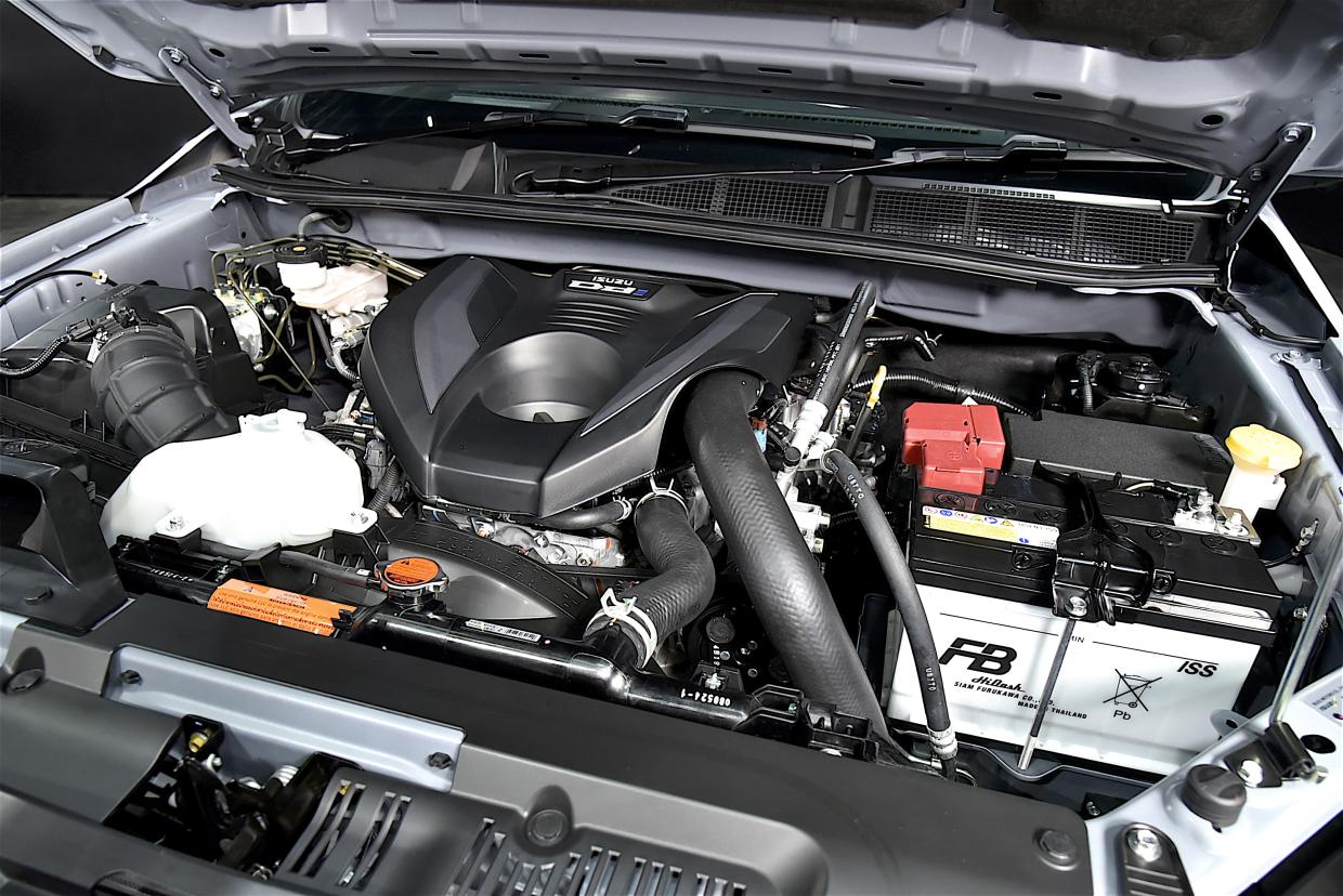 Isuzu MU-X รุ่น RS มีเครื่องยนต์ให้เลือกรุ่นเดียว คือ ดีเซลเทอร์โบ ขนาด 3.0 ลิตร Ddi Blue Power ให้กำลังสูงสุด 190 แรงม้า แรงบิดสูงสุด 450 นิวตันเมตร เกียร์อัตโนมัติ 6 จังหวะ พร้อมโหมด Rev Tronic และ Sequential Paddle Shift ที่พวงมาลัย มาพร้อมระบบขับเคลื่อน 4 ล้อ Rough Terrain Mode โดยมีสีให้เลือก 3 สี ได้แก่ สีเทาใหม่ Eiger Gray Opaque หลังคาดำ สีขาวมุก Dolomite White Pearl และสีดำ Bavarian Black Mica