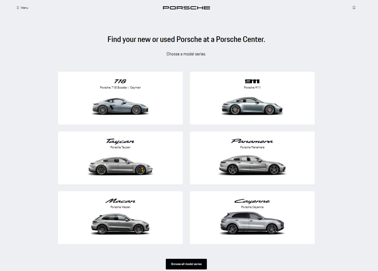 ปลดลอคประสบการณ์ใหม่ สู่ Porsche ในฝันของท่าน ง่าย ครบ จบในคลิค Porsche Finder ไม่ได้เป็นเพียงแค่พแลทฟอร์มค้นหารถยนต์ แต่เป็นการสร้างประสบการณ์ที่เหนือกว่าในการเป็นเจ้า ของ Porsche คันโปรดของท่านในยุคดิจิทอลนี้ เพียง 3 ขั้นตอนง่ายๆ ผ่านเวบไซท์ Porsche Finder ท่านก็สามารถค้นหา เลือก และจองรถ Porsche รุ่นที่ใช่ได้ทันที มั่นใจได้ว่ารถที่ท่านจองจะมาถึงมือท่านอย่างแน่นอน Porsche Finder คือ อีกหนึ่งความมุ่งมั่นของประเทศไทย ในการมอบประสบการณ์ที่ดีที่สุดให้แก่ลูกค้า โดยมุ่งเน้นการนำเสนอบริการที่สะดวกสบาย ตอบโจทย์ทุกความต้อง การ และสร้างความพึงพอใจสูงสุดให้แก่ลูกค้าทุกท่าน