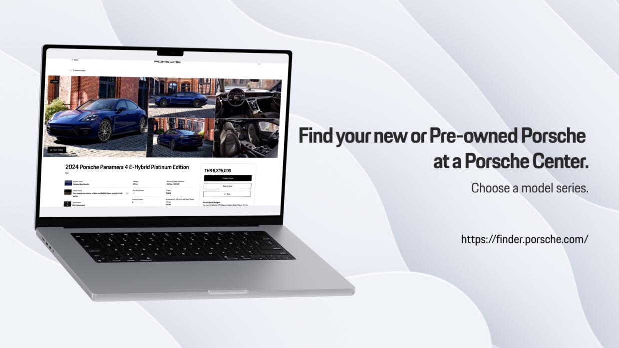 Porsche ประเทศไทย เดินหน้าสานฝันผู้หลงใหลในยนตรกรรมสปอร์ทระดับโลก เปิดตัว Porsche Finder อย่างเป็นทางการในประเทศไทย ซึ่งเป็นพแลทฟอร์มค้นหารถยนต์ Porsche (โพร์เช) ทั้งรุ่นใหม่ และรถยนต์ Porsche Pre-Owned ที่เต็มเปี่ยมด้วยคุณภาพ เพื่อมอบประสบการณ์การค้นหา และเป็นเจ้าของรถยนต์ Porsche ในฝันที่ง่าย สะดวก และตรงใจผู้ใช้งานมากยิ่งขึ้น เพียงปลายนิ้วสัมผัส